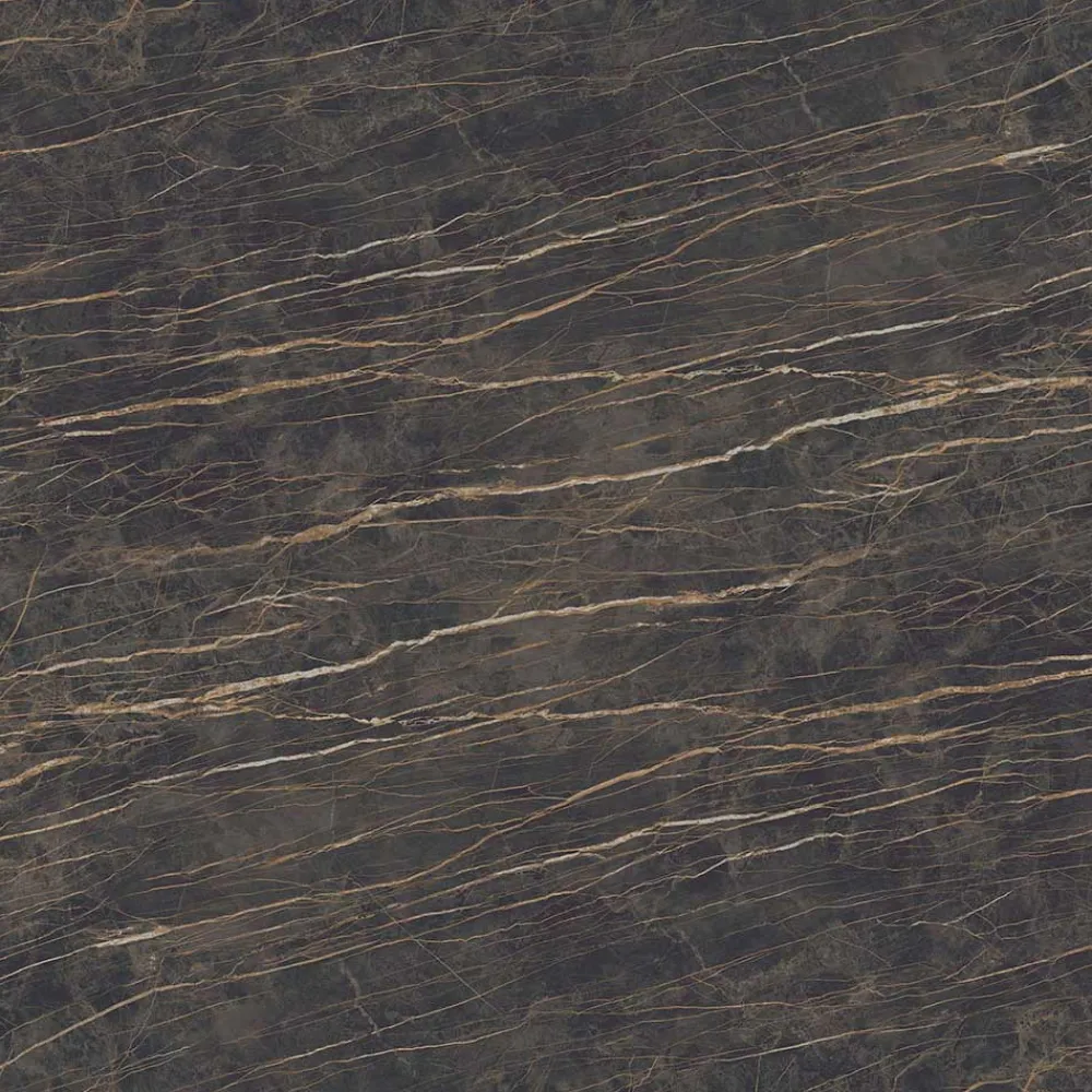 Komplett in Italien hergestellter Couchtisch mit Noir Desire-Keramikplatte, mattem Sahara-Marmor-Effekt und poliertem Aluminiumgestell. Dank seiner einfachen und eleganten Linien passt dieses Produkt perfekt in jedes Wohnambiente und jeden Einrichtungsstil. Noir Desire-Keramik bietet nicht nur Qualität und Widerstandsfähigkeit , sondern verleiht dem Raum dank seiner besonderen und einzigartigen Farbe und Grafik auch eine warme und einladende Atmosphäre. Dieses Einrichtungsaccessoire ist eine originelle und moderne Idee für alle, die es lieben, Räume mit Geschmack und Raffinesse einzurichten.