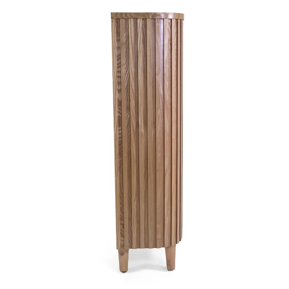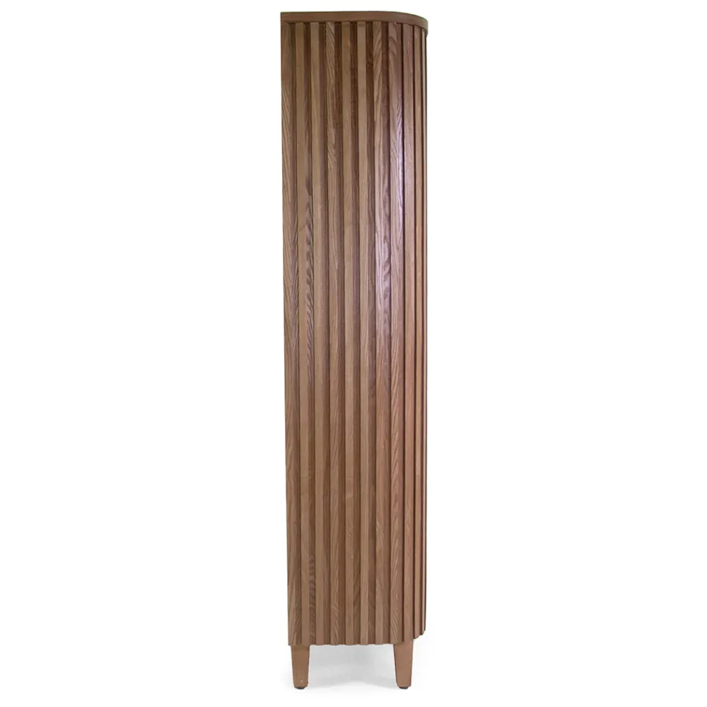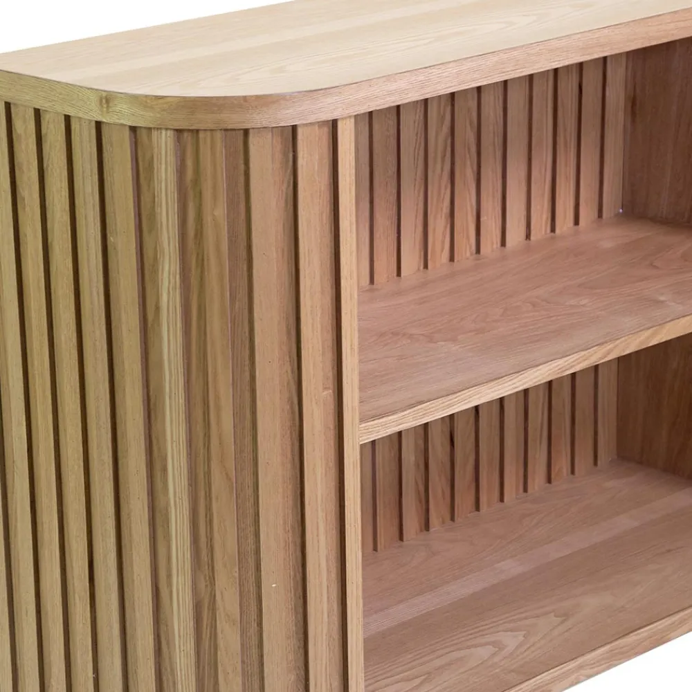 Dieses elegant gestaltete Bücherregal ist aus MDF-Furnier mit einer Oberfläche gefertigt, die die Wärme und Authentizität von natürlichem Holz hervorruft. Seine massiven Tannenholzbeine sorgen für Stabilität und Langlebigkeit und machen es zu einer perfekten Wahl für jeden Raum. Die vertikalen Linien an den Seitenflächen verleihen ihm einen Hauch von künstlerischer Raffinesse, während die geräumigen, offenen Regalböden reichlich Platz für Bücher, Dekorationsgegenstände oder Pflanzen bieten. Ideal für die Aufwertung von Wohnzimmern, Büros oder Leseecken, kombiniert dieses Bücherregal Funktionalität und zeitgenössischen Stil für ein Dekor, das auffällt.