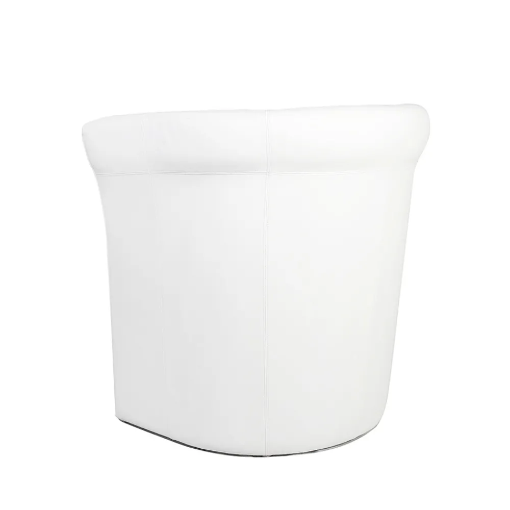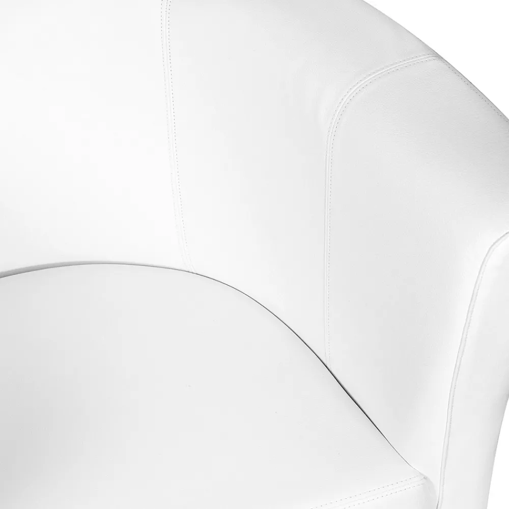 Innensessel in runder, gut gepolsterter Form mit Buchenholzstruktur, komplett mit weißem Leder bezogen und verchromten Füßen, vollständig in Italien hergestellt.