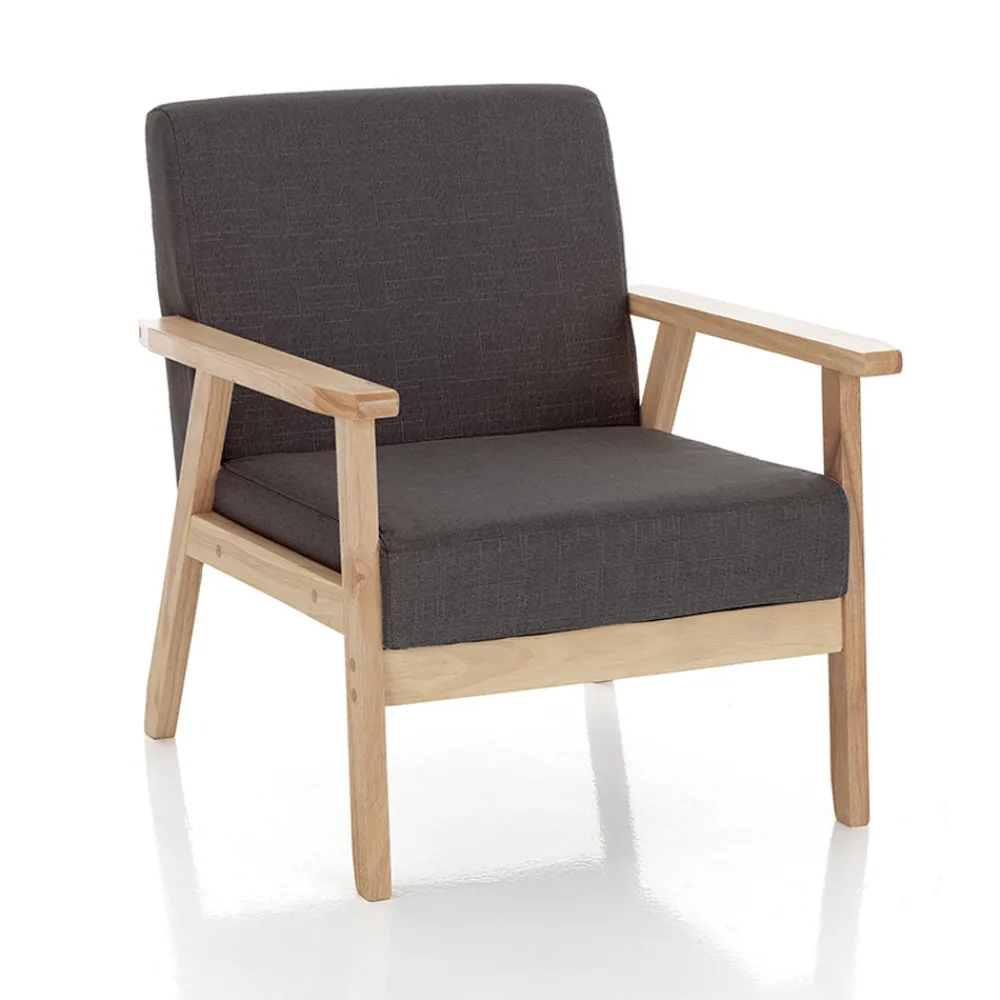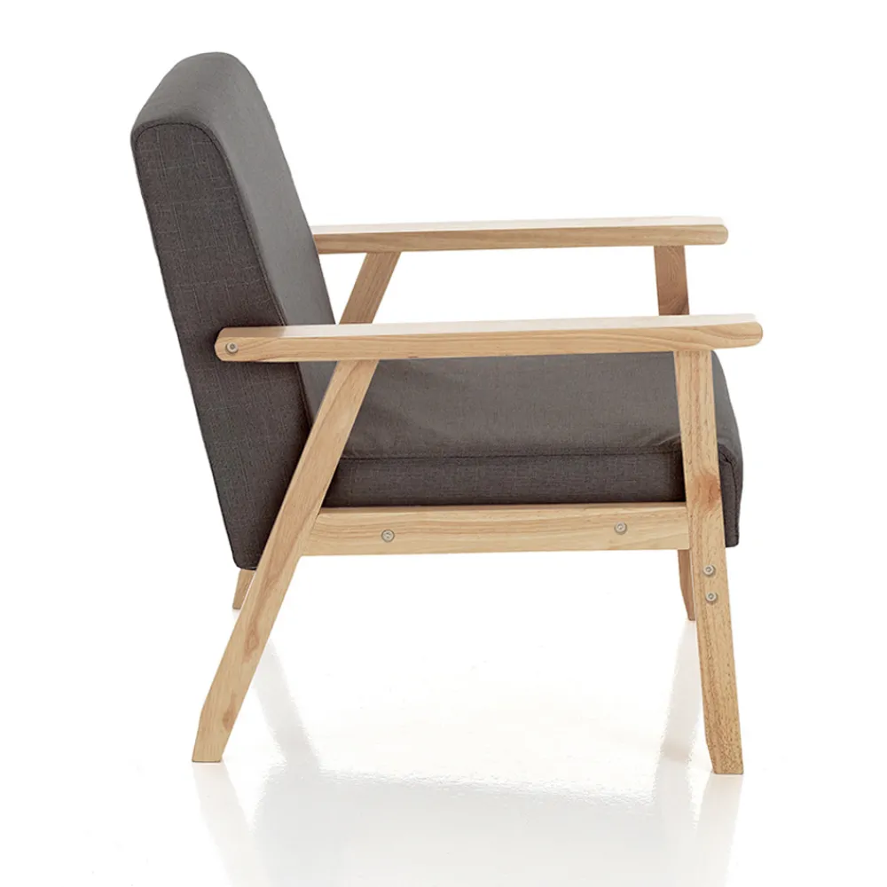 Innensessel aus massivem Kiefernholz und dunkelgrauem Stoff