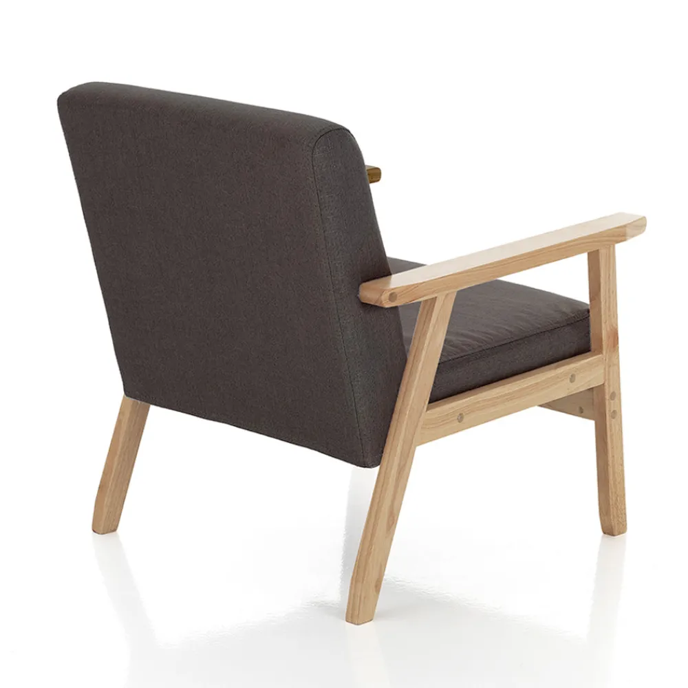 Dieser Sessel verbindet Eleganz und Komfort mit einem klaren und zeitgenössischen Design. Er ist aus Massivholz gefertigt, bietet außergewöhnlichen Widerstand und ein warmes Aussehen, das zum Entspannen einlädt. Der Kontrast mit der dunkelgrauen Stoffpolsterung verleiht jedem Raum einen Hauch moderner Raffinesse .