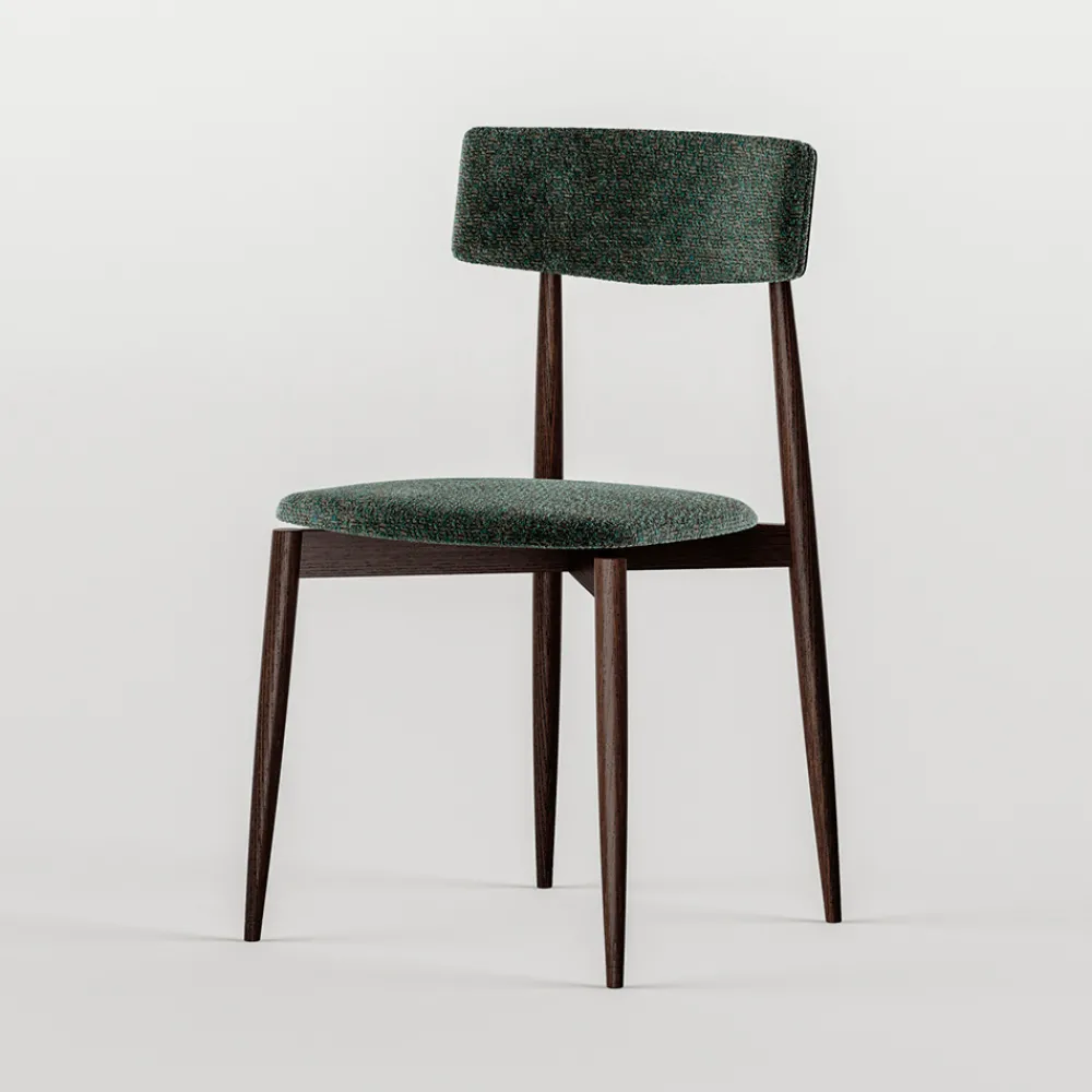 Praktisch und vielseitig ist die Kombination aus sorgfältigen manuellen Prozessen und dem Einsatz von Maschinen der neuesten Generation. Die Liebe zum Detail, vom Metalldetail auf der Rückseite über die besondere Form der Beine bis hin zur Kombination mit exklusiven Stoffen, machen ihn zu einem raffinierten Stuhl mit Charakter.