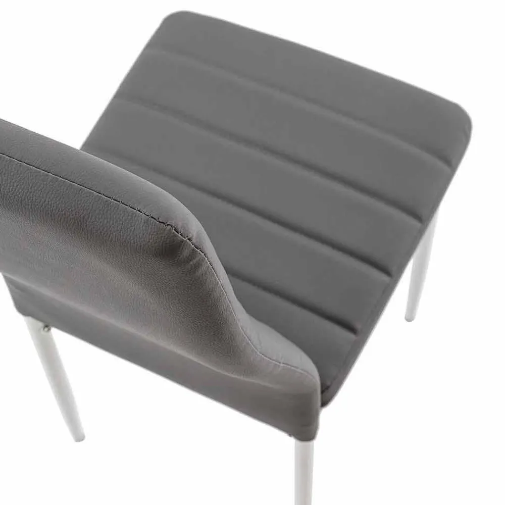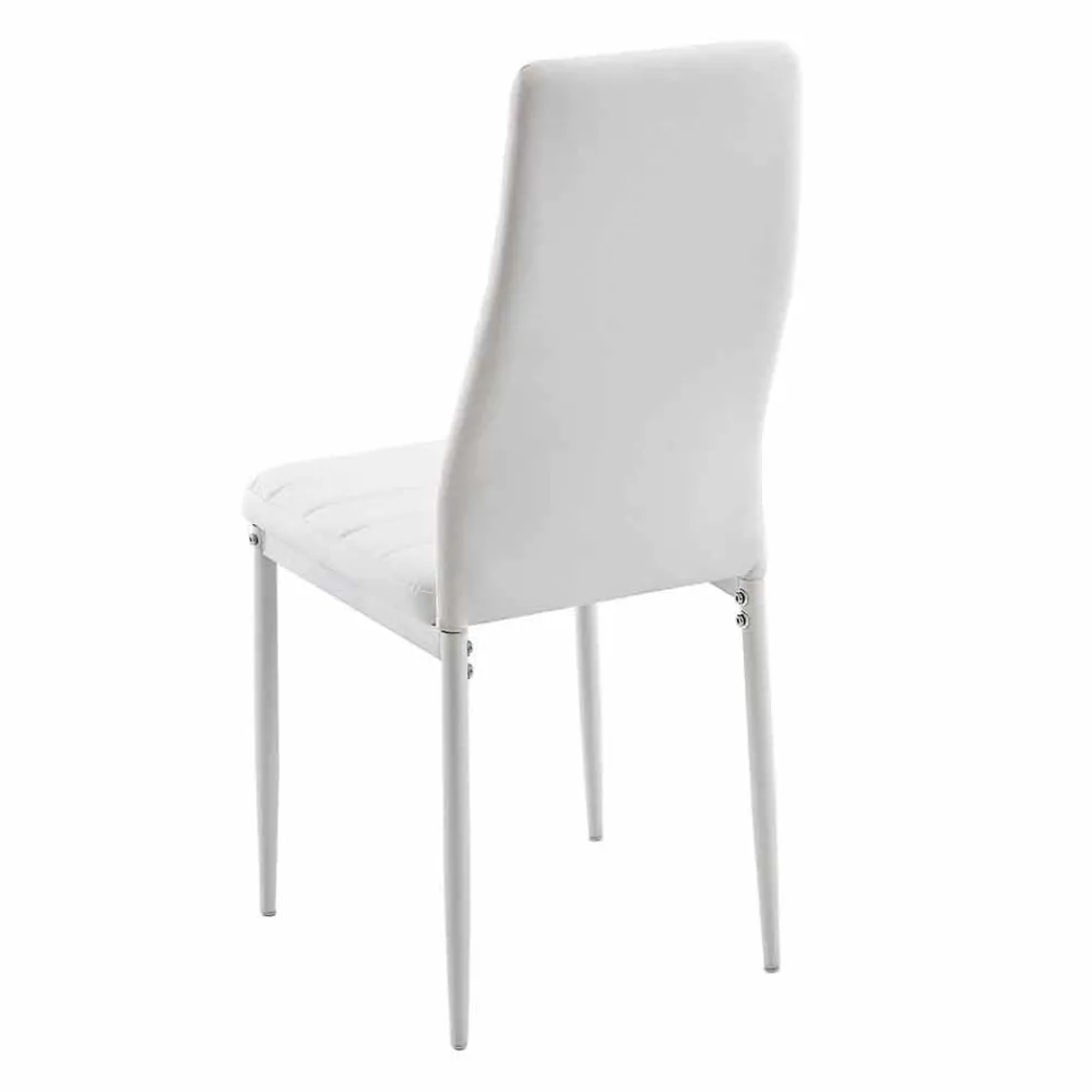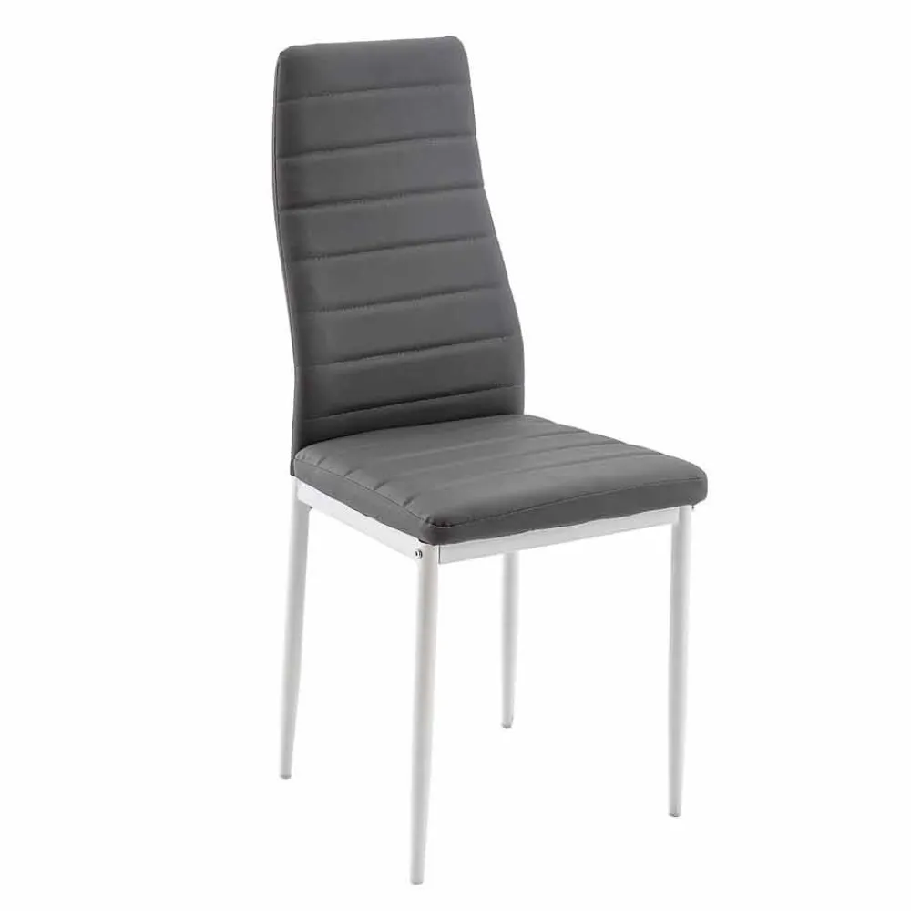 Dieser Esszimmer- oder Küchenstuhl hat ein schlichtes und elegantes Design, das perfekt zu zeitgenössischen und modernen Einrichtungsstilen mit raffiniertem Geschmack passt. Seine Struktur besteht aus lackiertem Metall , während Sitz und Rückenlehne gepolstert und mit Kunstleder bezogen sind.