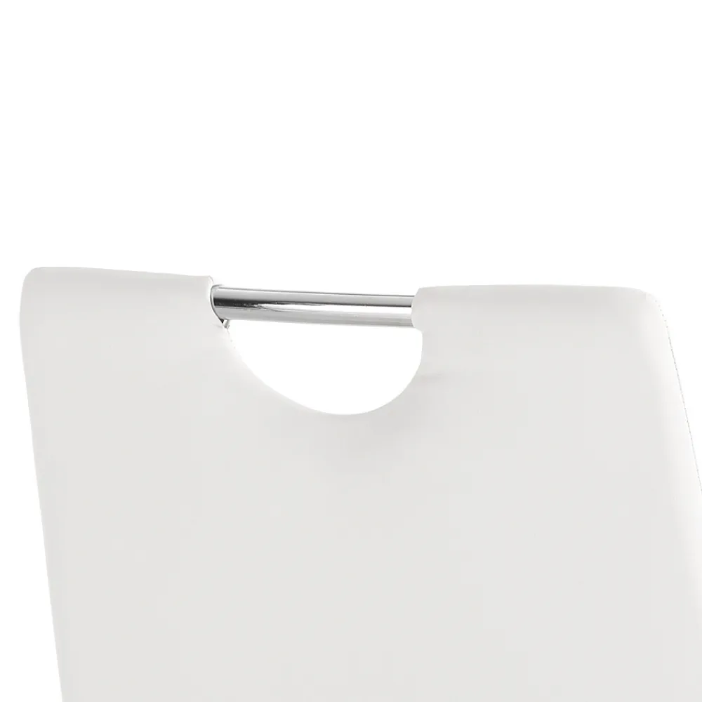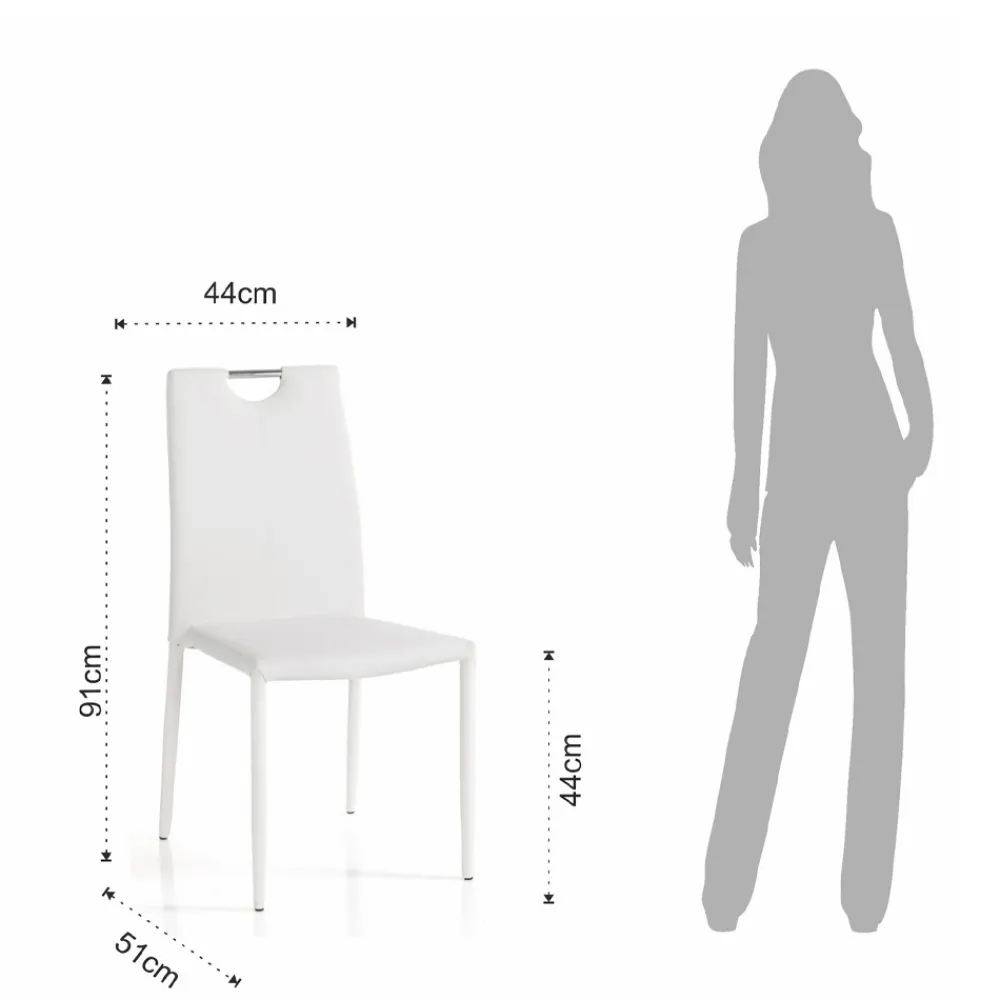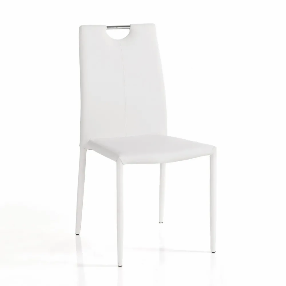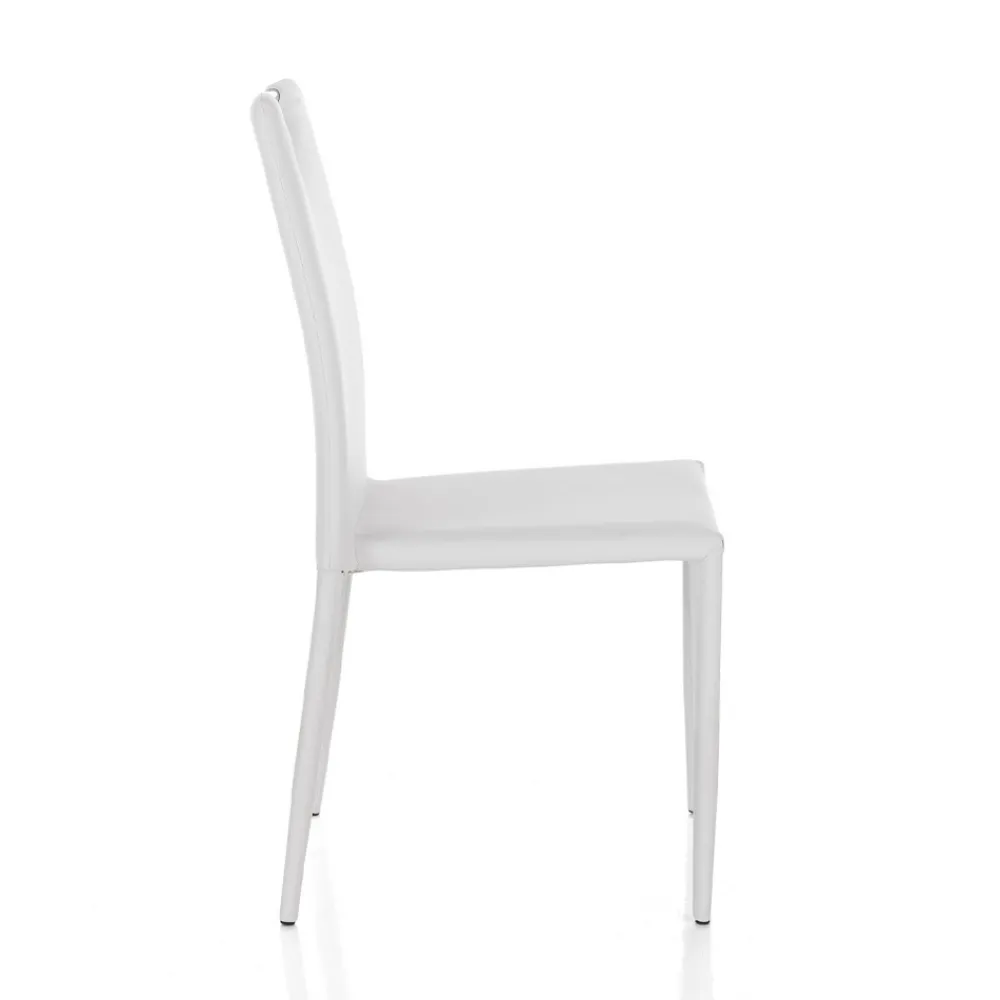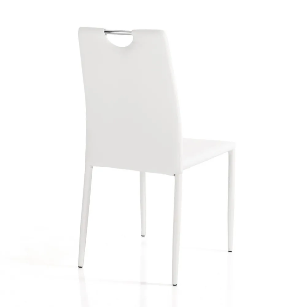 Set aus 4 Stühlen, komplett mit nicht abnehmbarem weißem Kunstleder bezogen, Innenpolsterung aus mittelstarkem Schaumgummi und Innenstruktur komplett aus Stahl .