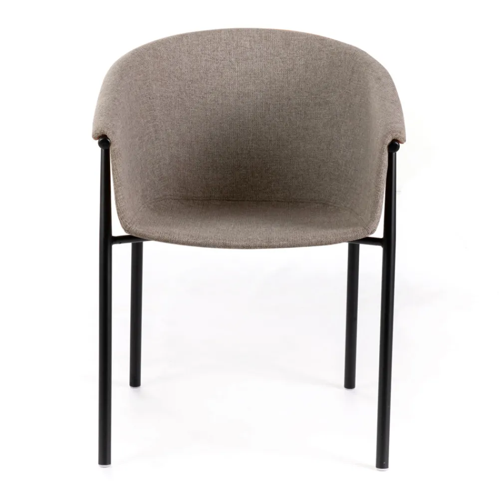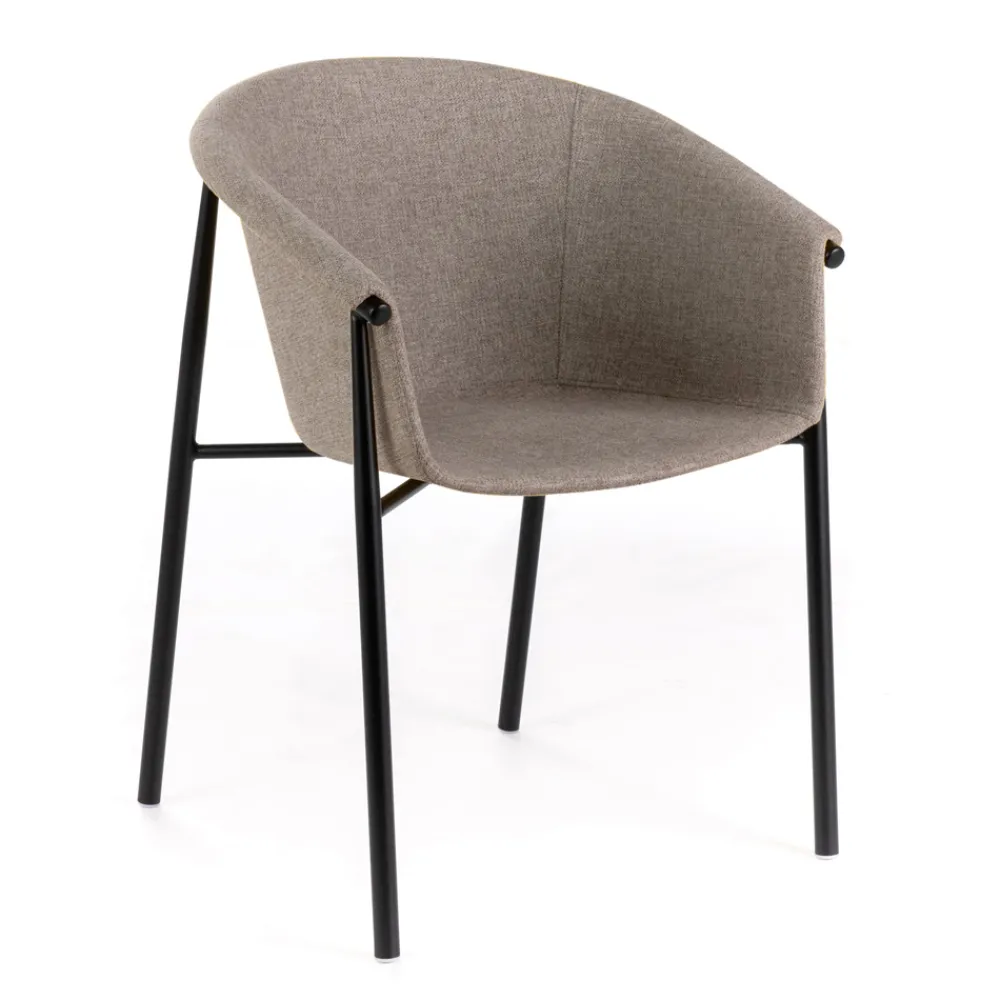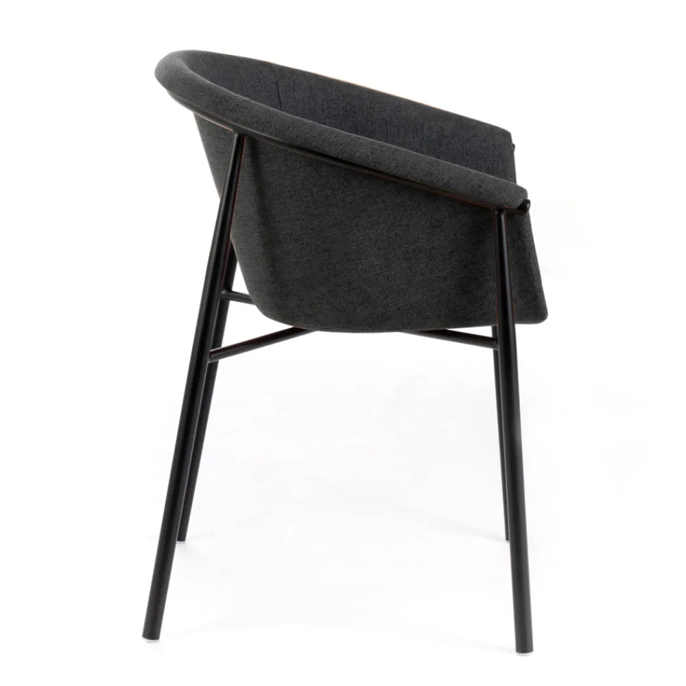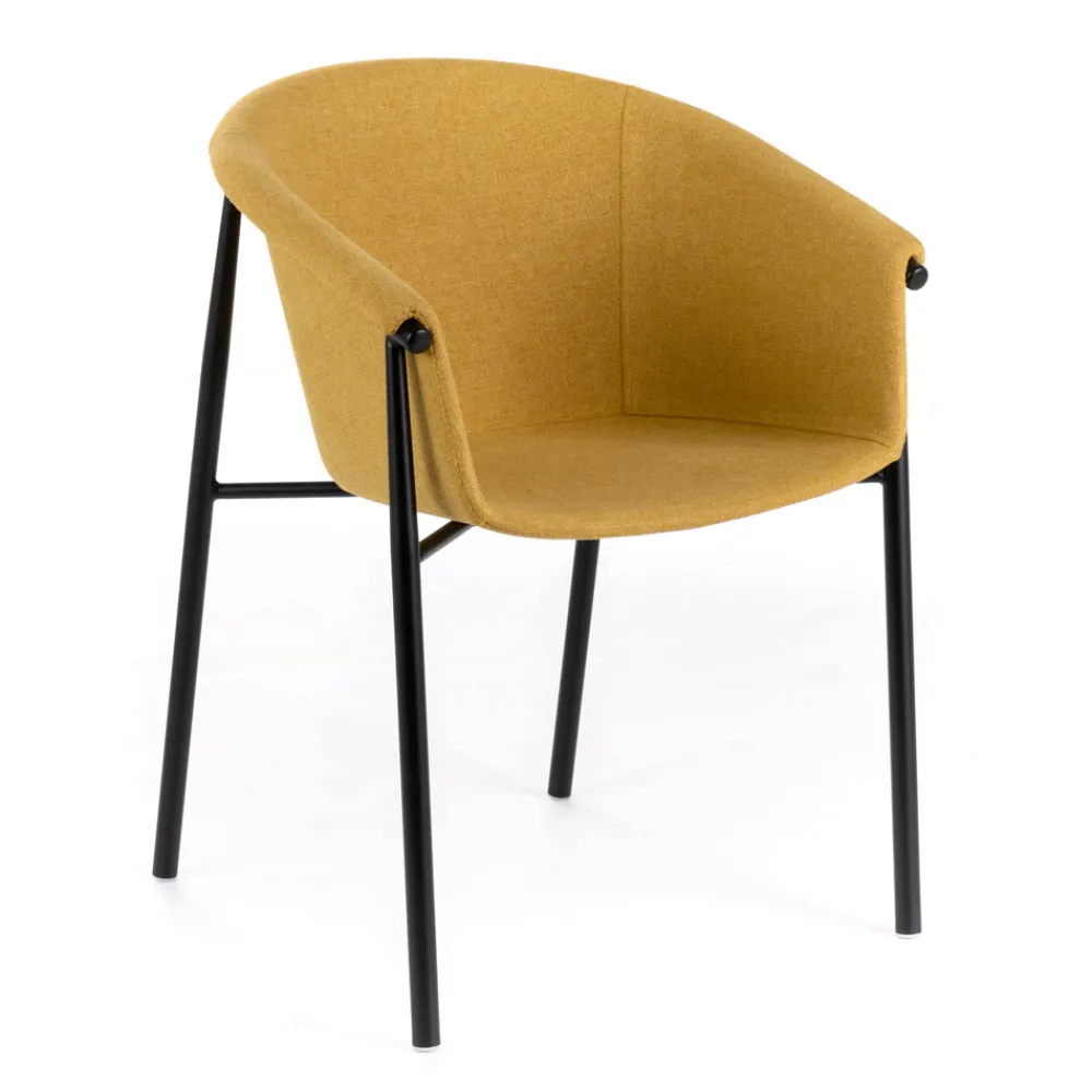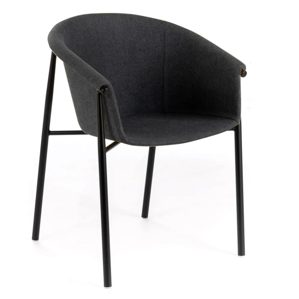 4 Innenstühle mit Stoffbezug und schwarzen Metallbeinen.