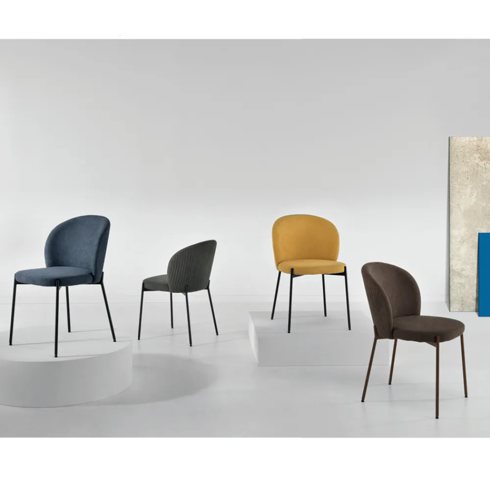 Wohnzimmerstuhl im modernen Stil mit gepolsterter Sitzfläche aus Stoff und lackierter Metallstruktur , ein raffiniertes und funktionelles Möbelstück dank der großen Sitzfläche und der bequemen Rückenlehne. Ein Produkt mit einem essentiellen Stil , der in einem zeitgenössischen Ton neu aufgelegt wurde, um einen originellen Sitz durch die Kombination von modernen und innovativen Materialien und Farben zum Leben zu erwecken. Das Ergebnis ist eine einzigartige Einrichtungslösung, die Funktionalität und Vielseitigkeit verbindet, um Ihre Wohnräume mit Persönlichkeit auszustatten.
