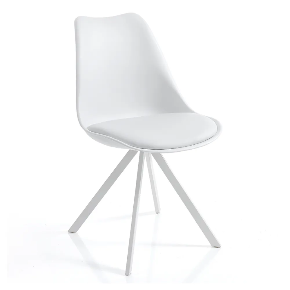 Esszimmerstuhl mit Beinen aus matt lackiertem Stahl , Sitzschale aus mattem Polypropylen und gepolsterter Sitzfläche mit Kunstlederbezug . Eine originelle und moderne Einrichtungsidee, die die beeindruckende Ästhetik von Stahl mit der Modernität von Polypropylen und der Eleganz von Leder kombiniert, um ein Produkt mit einem exklusiven und raffinierten Stil zu schaffen . Dank seines kreativen Designs können Sie charaktervolle Umgebungen schaffen, die den Ausdruck Ihrer Persönlichkeit unterstreichen und so einladende Räume schaffen, in denen Sie wieder atmen und träumen können.