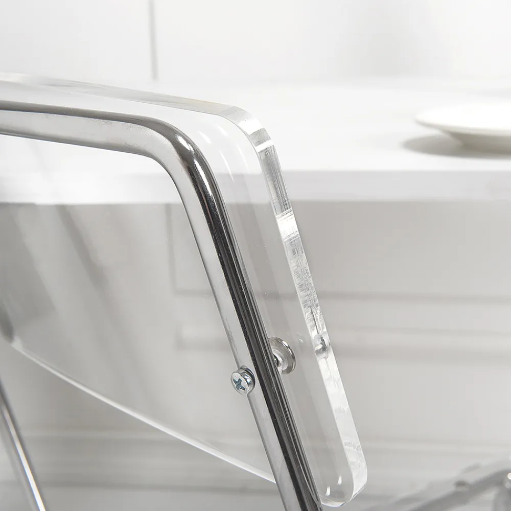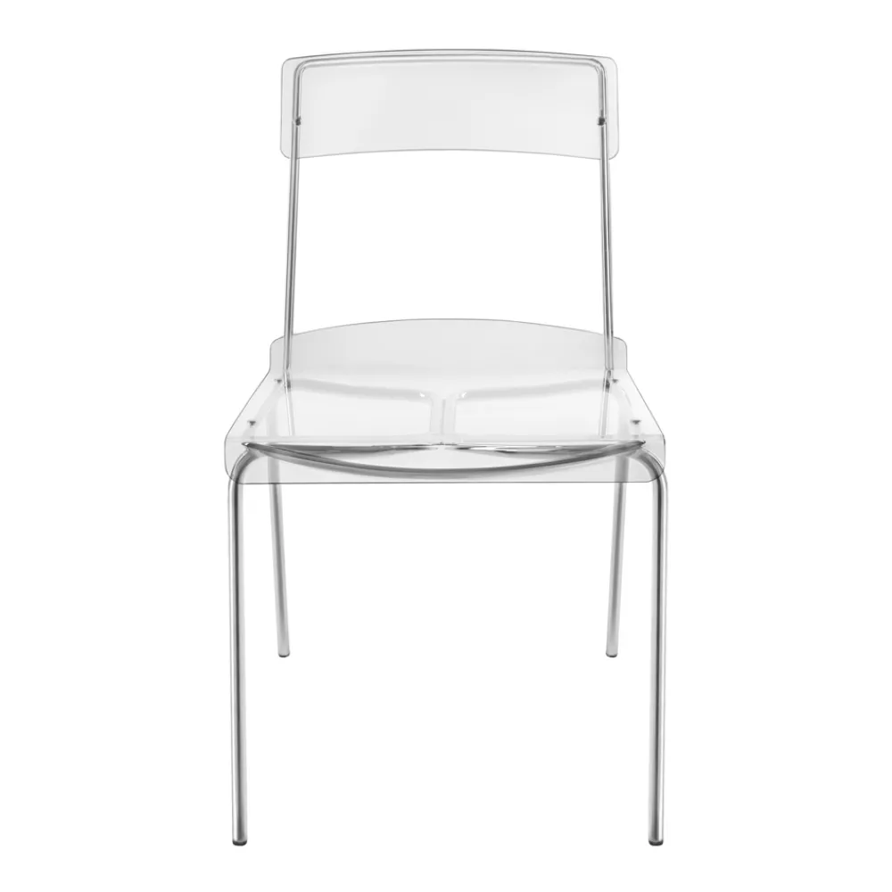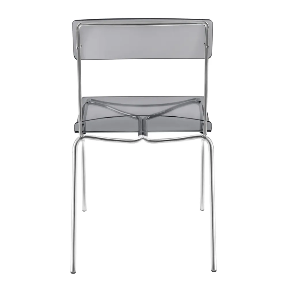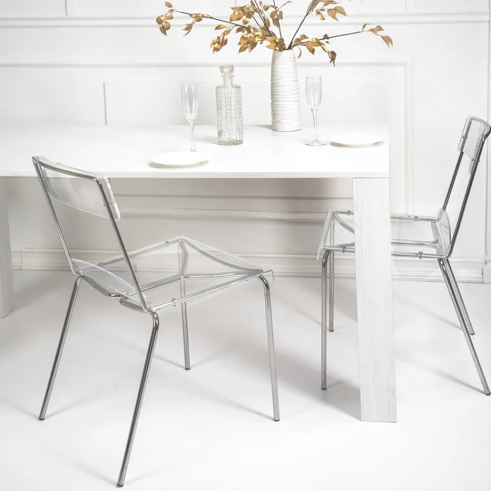 Esszimmerstuhl mit Plexiglasschale und silberverchromter Metallstruktur , vollständig in Italien hergestellt . Eine ideale Einrichtungslösung für alle, die Einfachheit und Vielseitigkeit suchen, um ihre Wohnräume mit modernem Charakter und hoher Funktionalität einzurichten . Die Form der Struktur ermöglicht es auch, sie zu stapeln, was sie auch zu einer perfekten Idee für Vertragsräume wie Bars und Restaurants macht.