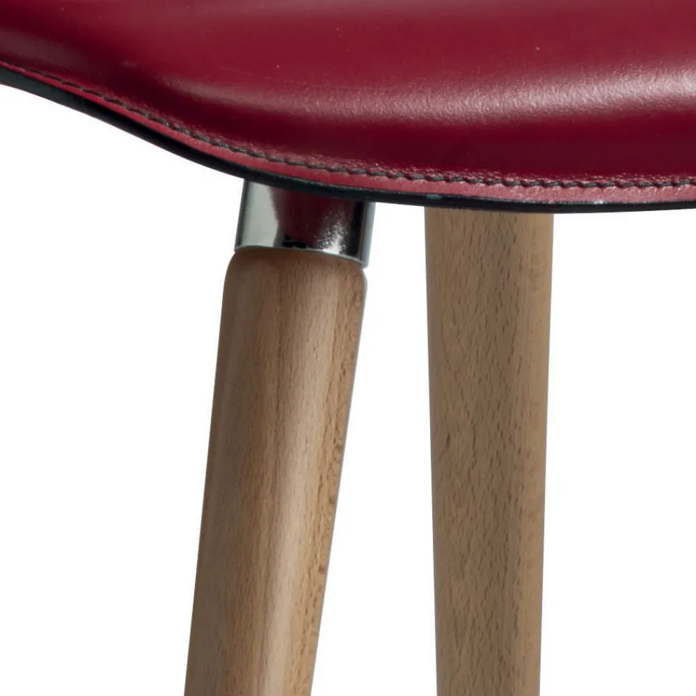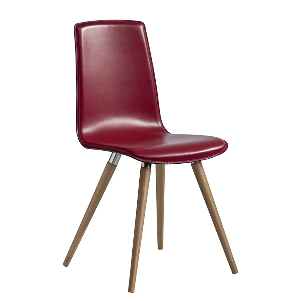 Innenstuhl mit Monocoque -Struktur aus Naturbuche , Sitz und Rückenlehne aus dunkelbraunem regeneriertem Leder, vollständig in Italien hergestellt .