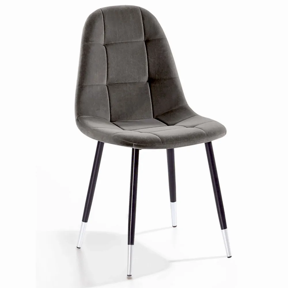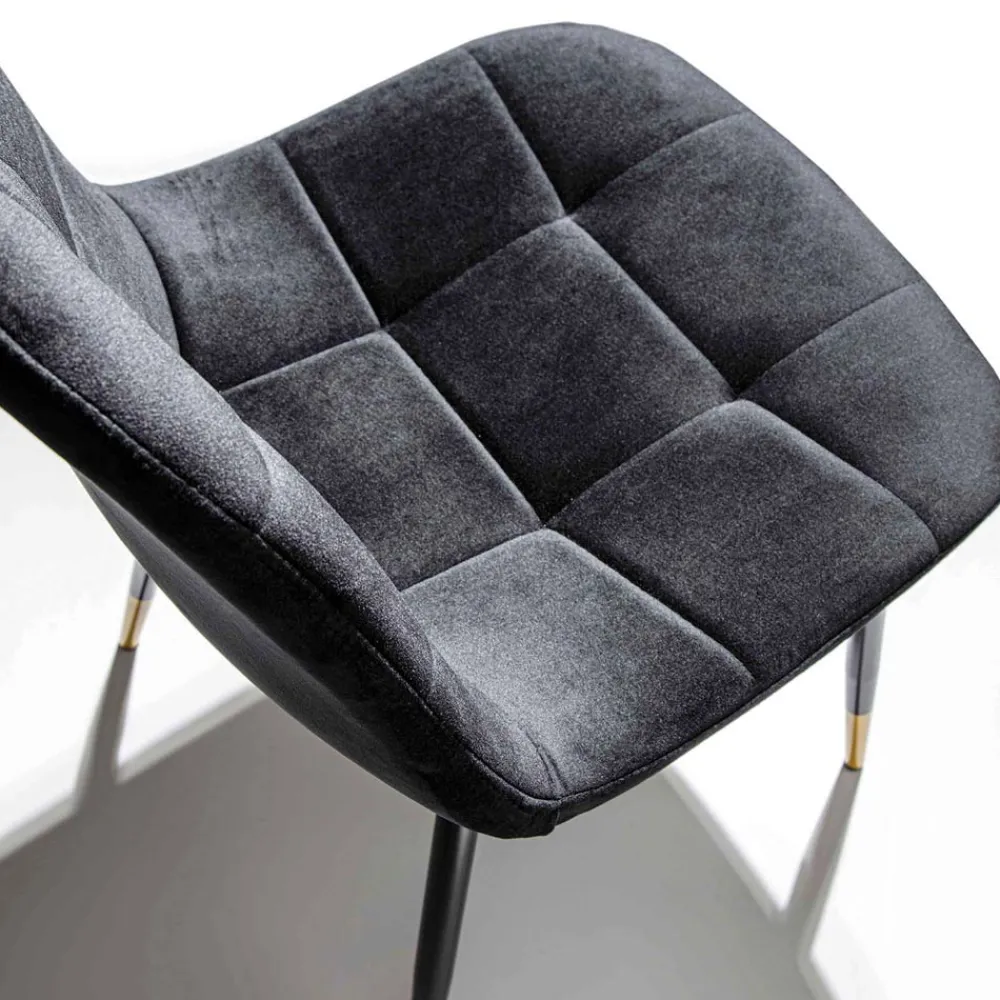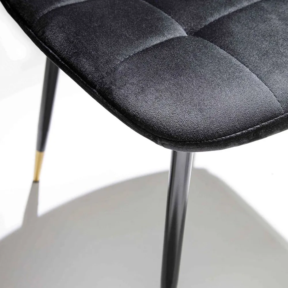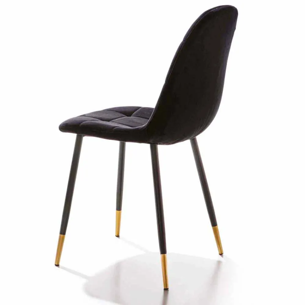 Stuhl für Esszimmer oder Küche mit Sitz aus schmutzabweisendem Samt und Sockel aus schwarzem Metall mit lackierter Spitze. Das Design ist so konzipiert, dass zeitlose Eleganz , ein bequemer Sitz und ein vielseitiger Look gewährleistet sind, der eine faszinierende Ästhetik schafft, wenn er neben dem Esstisch und allen umgebenden Möbeln platziert wird. Dieser Stuhl hat eine raffinierte Seele dank der Verwendung von Samt, einem kostbaren Material im Retro-Stil, das in Kombination mit der Modernität des schwarzen Metalls und den bemalten Details, die die 4 Beine charakterisieren, ein avantgardistisches Design schafft. Es kann sich sowohl an Umgebungen im zeitgenössischen Stil als auch an klassischere Möbel anpassen, um einen innovativen Kontrast zwischen Stilen und Persönlichkeiten zu schaffen.