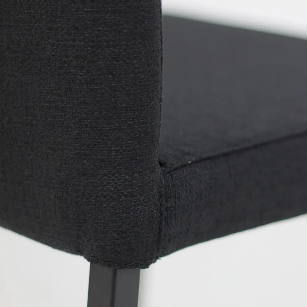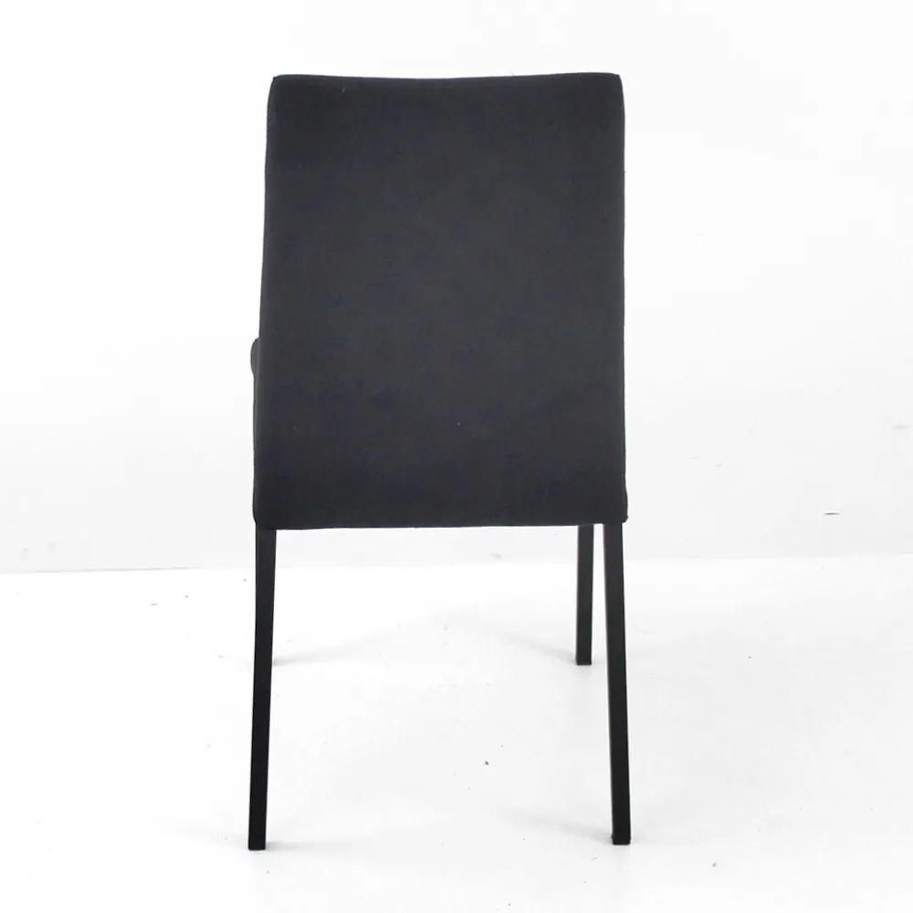 Komplett in Italien hergestellter Wohnzimmerstuhl mit hoher Rückenlehne, schwarz lackierten Beinen und Sitz aus schwarzem Struktura-Stoff, perfekt für zu Hause und geeignet für den Objektbereich. Dieses Einrichtungsset ist eine perfekte Idee für alle, die dem Raum eine besondere und moderne Note verleihen möchten, ohne auf die Funktionalität und den Komfort des weichen und bequemen Sitzes zu verzichten. Die verwendeten Materialien garantieren Qualität und Langlebigkeit und machen den Stuhl für alle Einsatzsituationen und -anlässe nutzbar.