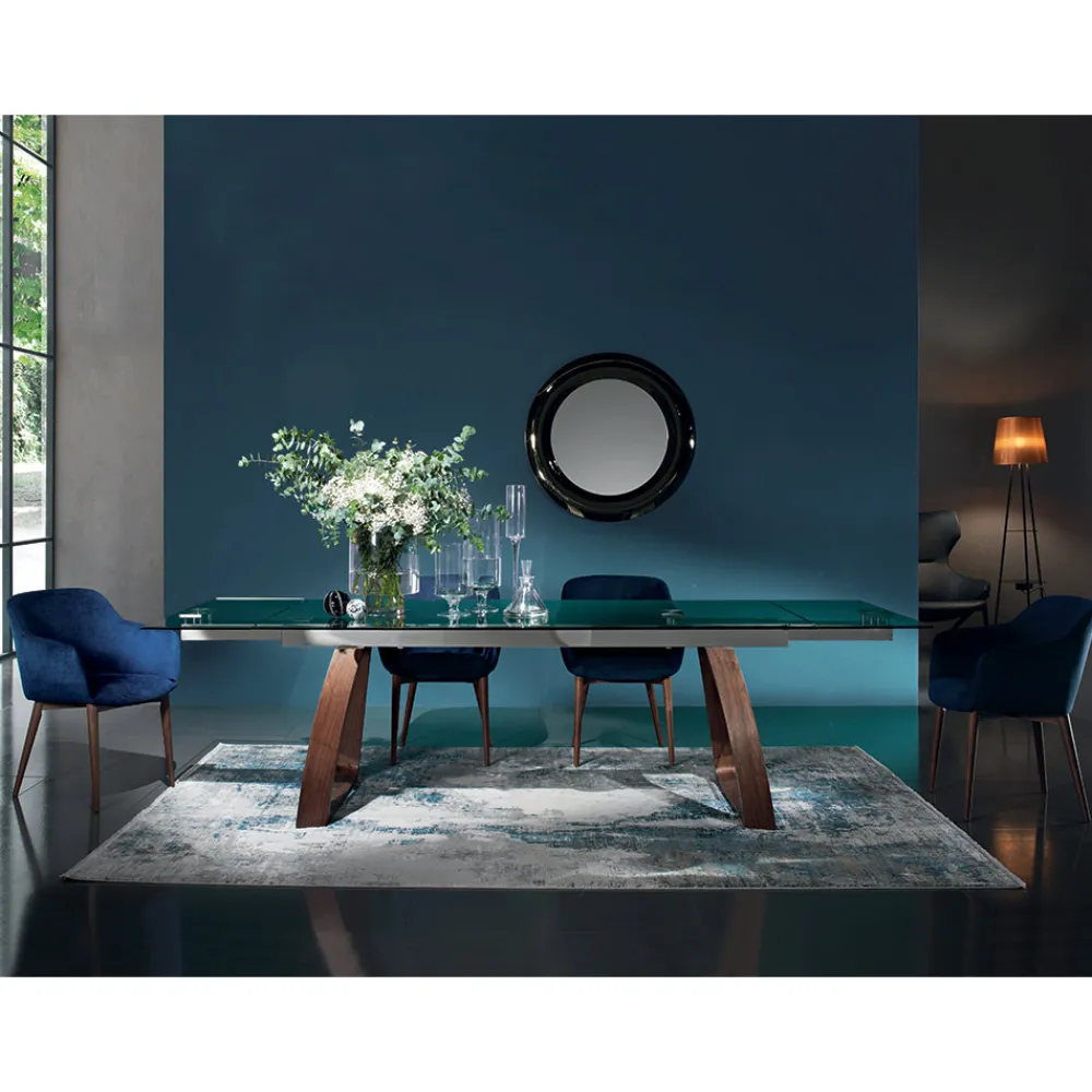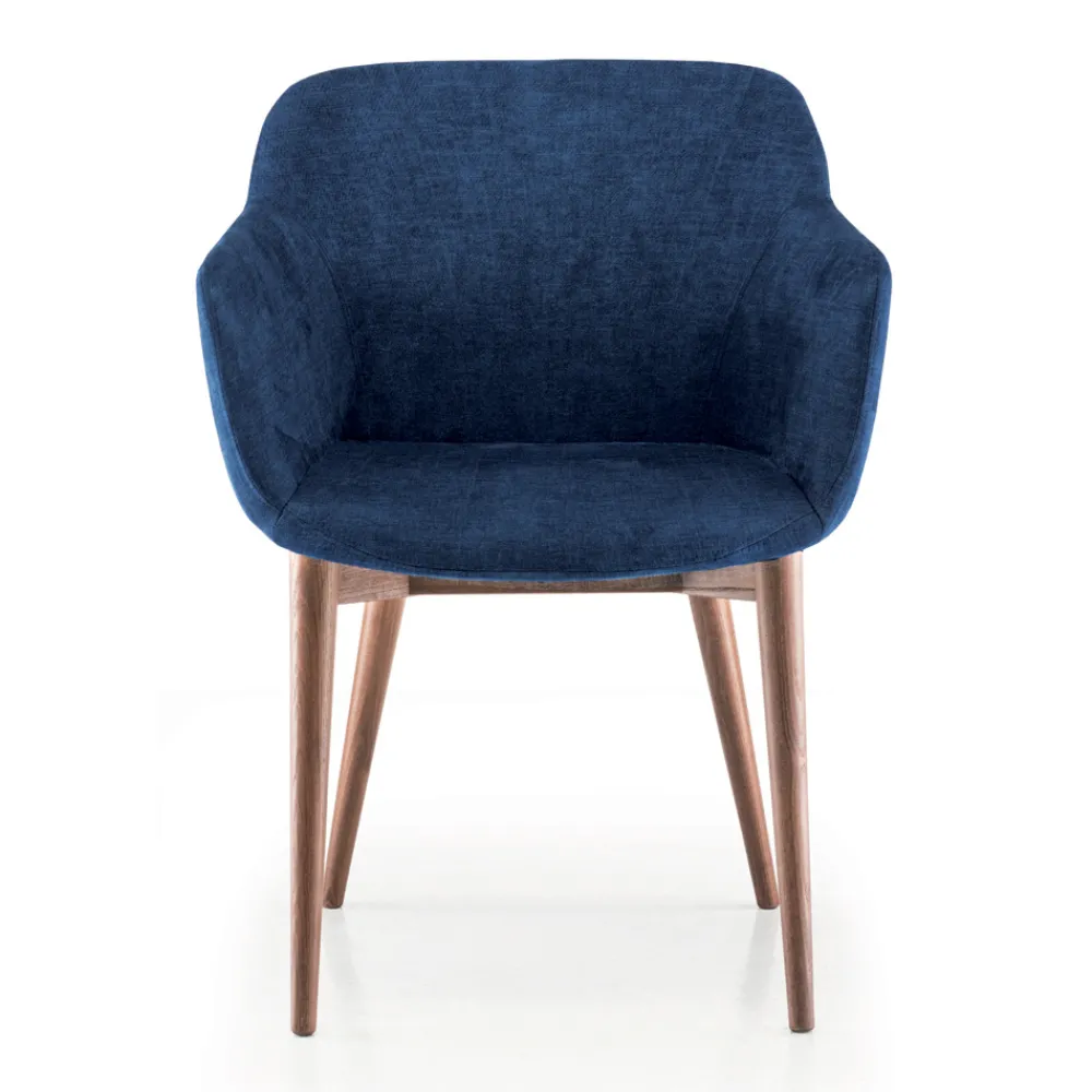 In Italien hergestellter Esszimmerstuhl mit vollständig mit Stoff bezogenem Stahlsitz und Beinen aus Eschenholz mit Canaletto-Walnuss-Finish. Ein imposantes und raffiniertes Design , das perfekt zu modernen Umgebungen passt, in denen es dank seiner starken zeitgenössischen Persönlichkeit zum Protagonisten wird. Die perfekte Kombination aus der zeitlosen Eleganz von Holz und dem originellen Aussehen des Stoffes und seiner Textur ermöglicht die Schaffung einer exklusiven Einrichtungslösung, ideal für diejenigen, die Funktionalität und Design in einem einzigen Produkt suchen. Der Sitz zeichnet sich durch weiche und umhüllende Linien und Formen aus , die für hervorragenden Komfort sorgen und gleichzeitig eine originelle und moderne Ästhetik bieten.
