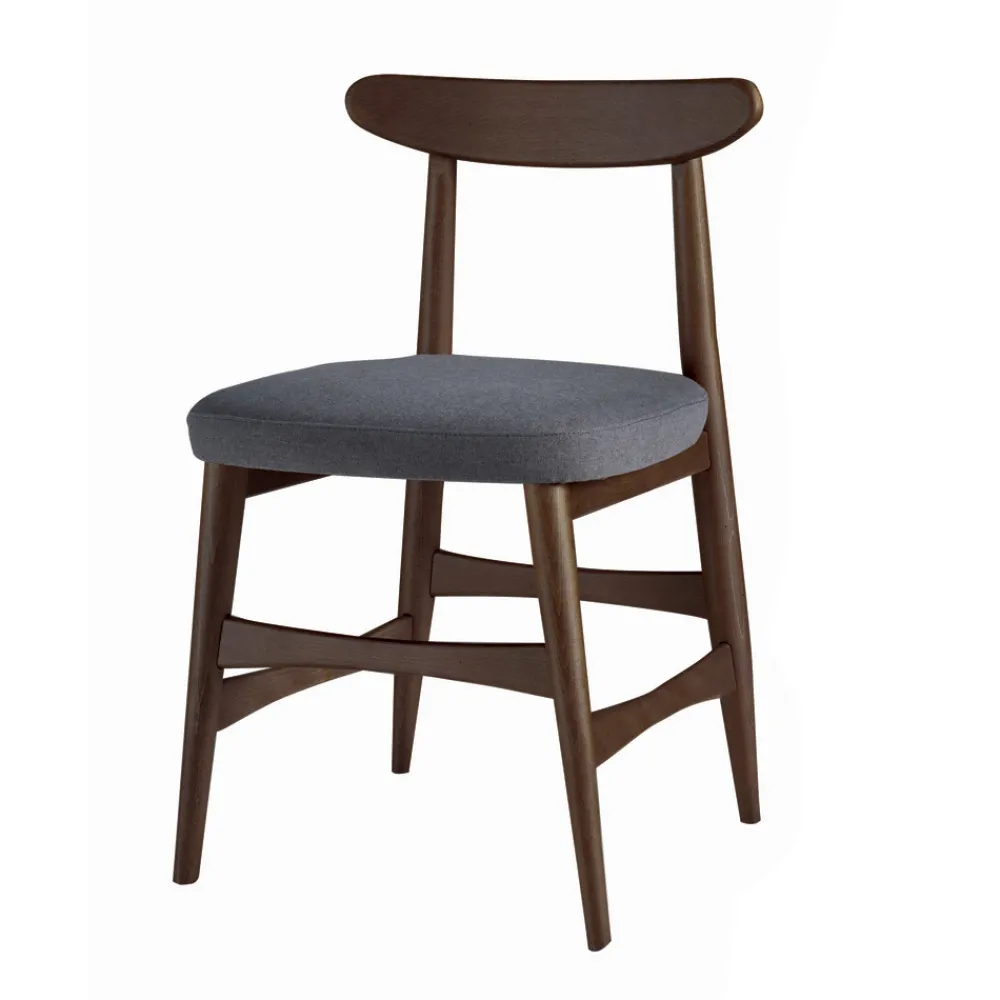 Esszimmerstuhl mit Struktur aus massivem Eschenholz mit Canaletto-Finish, Rückenlehne aus massivem Birkenholz und gepolsterter Sitz e mit aschfarbenem Stoff bezogen , vollständig in Italien hergestellt. Diese Einrichtungslösung ist das Ergebnis einfacher, aber hochwertiger Materialien, die dieses Möbelstück langfristig stabil und widerstandsfähig machen und dazu beitragen, ein perfektes Produkt für jede Umgebung zu schaffen.