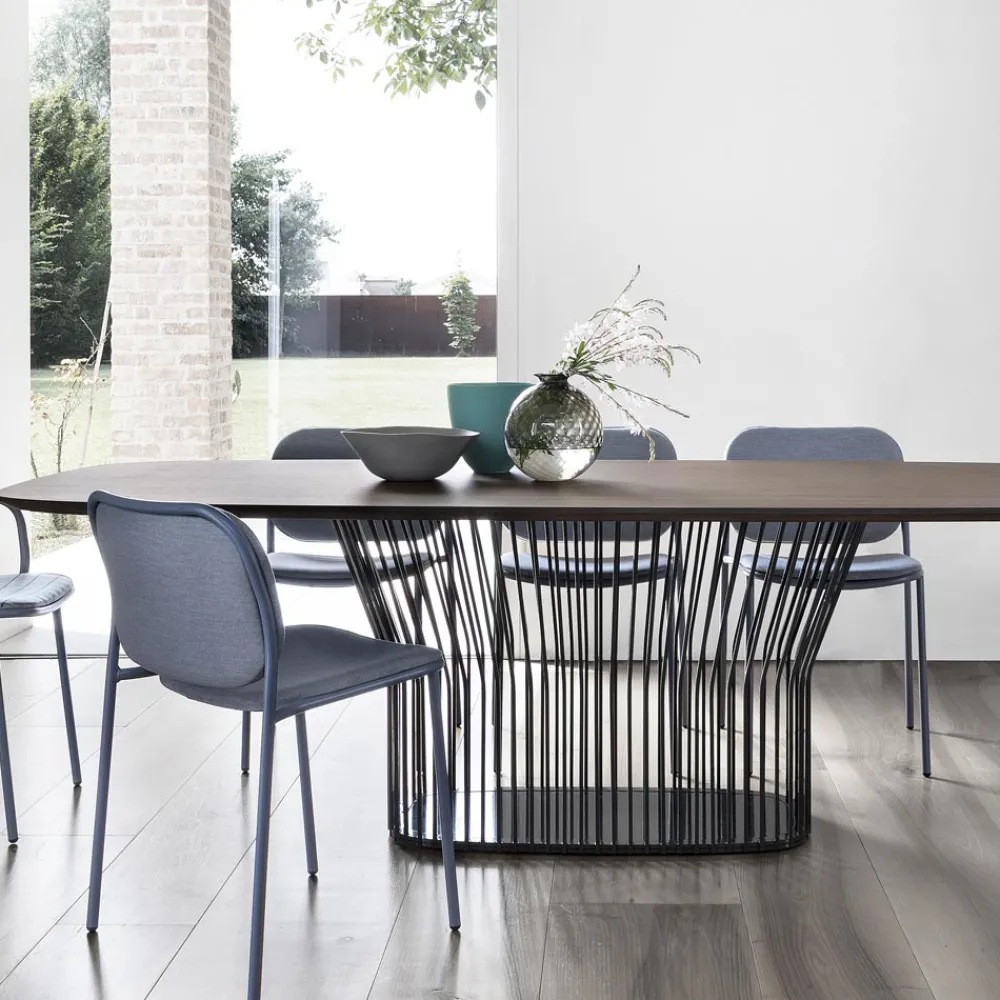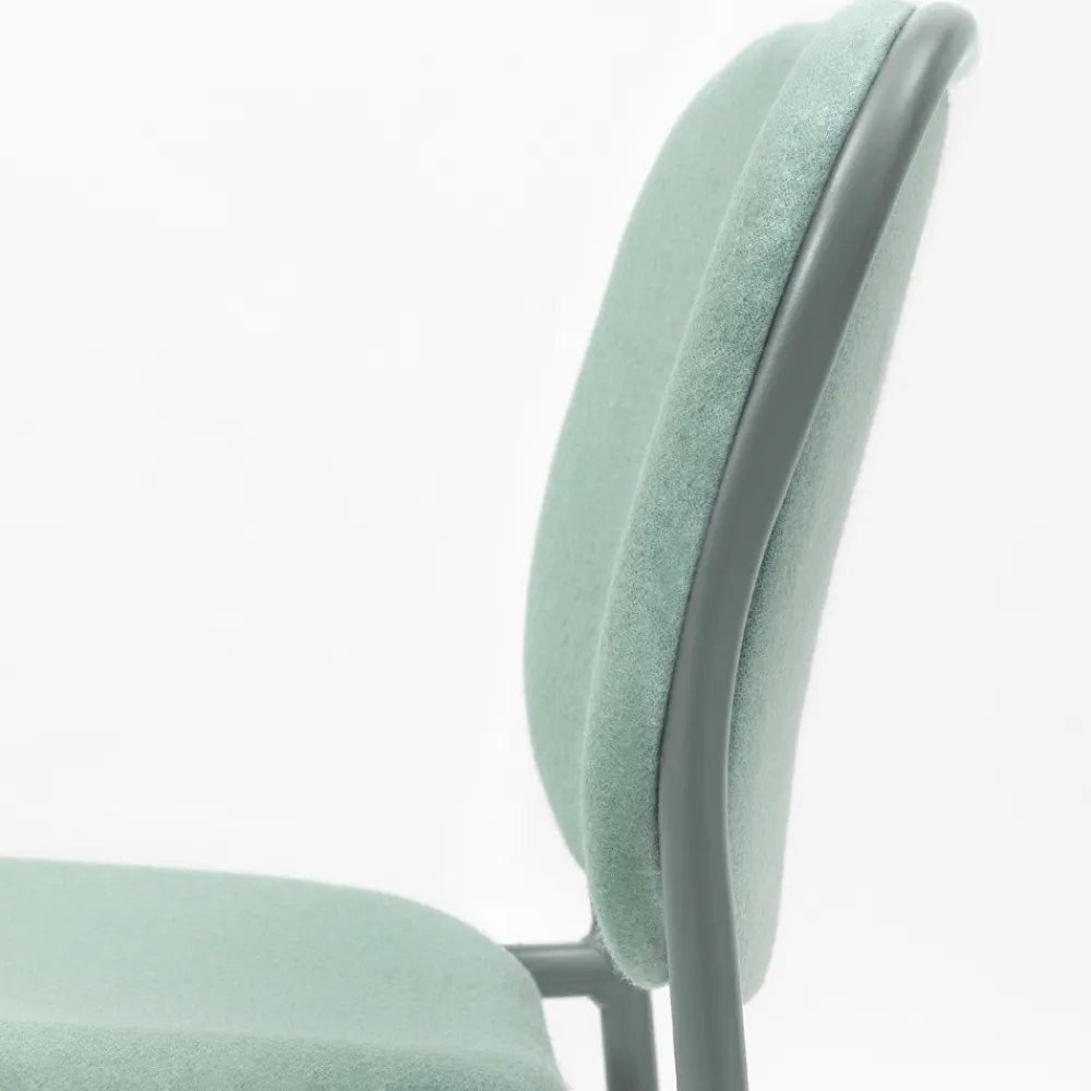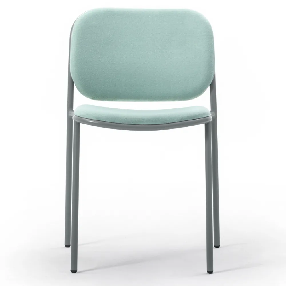 Die weiche Polsterung vervollständigt das Endergebnis, indem sie einen einladenden und bequemen Sitz bietet, ideal, um sich beim Mittag- und Abendessen in modernen Küchen oder Esszimmern wertvolle Momente der Entspannung zu gönnen. Die Möglichkeit des Stapelns betont auch seine funktionale Seite und macht ihn zu einer perfekten Lösung auch für Objektumgebungen wie Bars und Restaurants, wo es wichtig ist, den Raum zu optimieren, wenn die Stühle nicht benutzt werden.