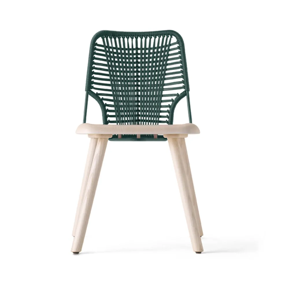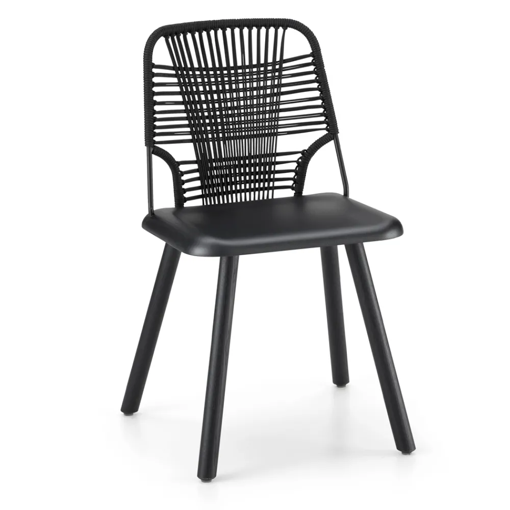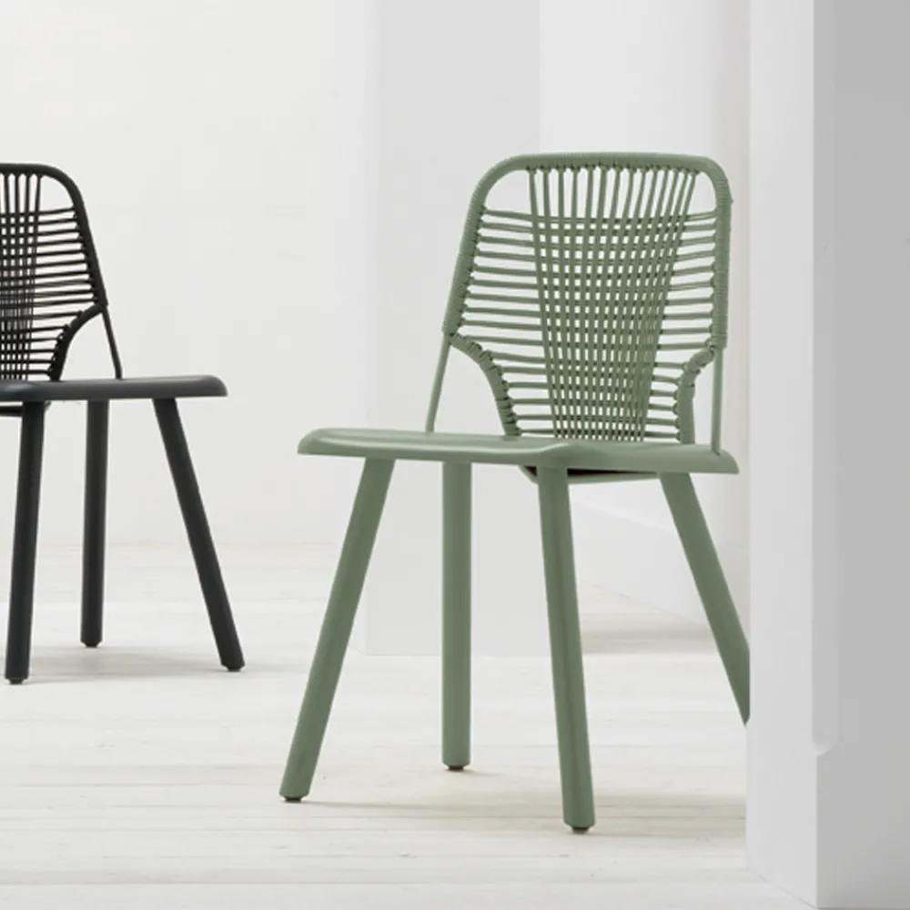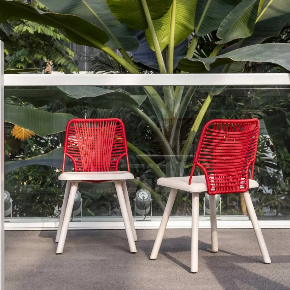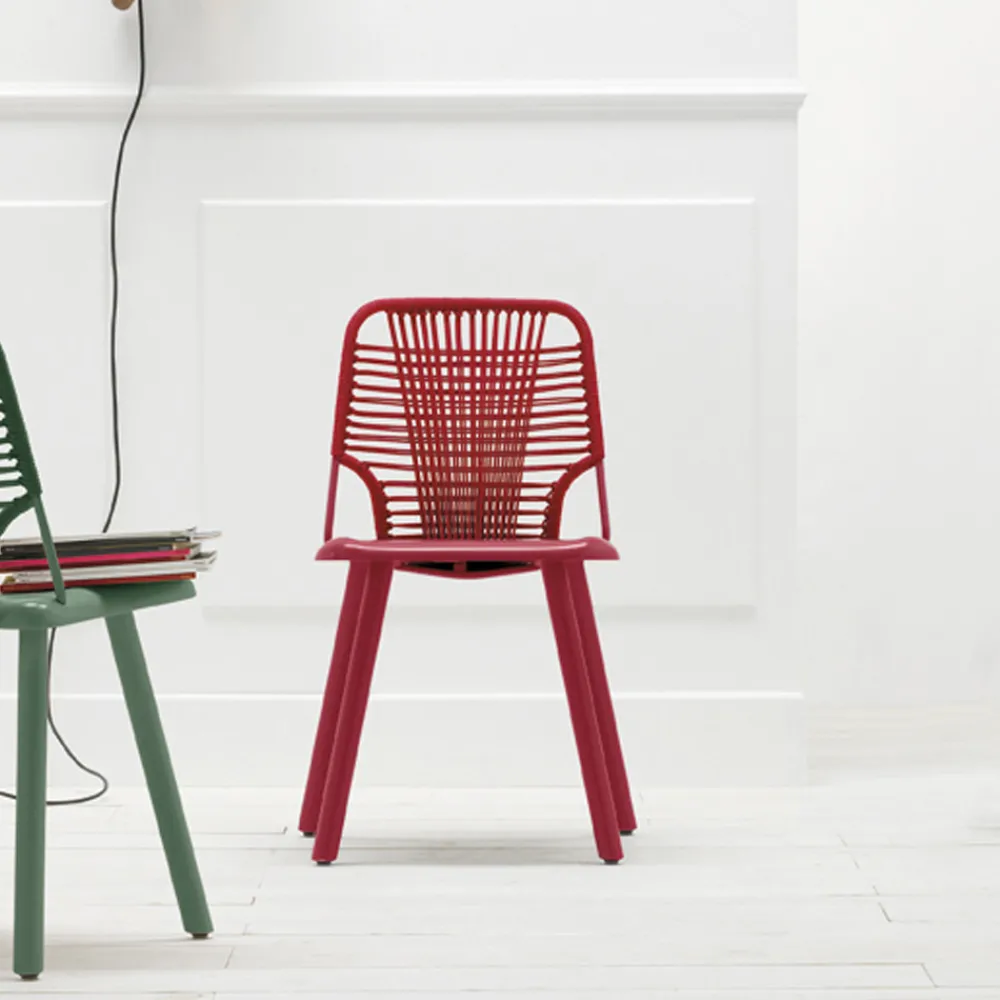 Hochwertiger Stuhl aus Holz, Metall und farbigem Seil Made in Italy, 2 Stück.