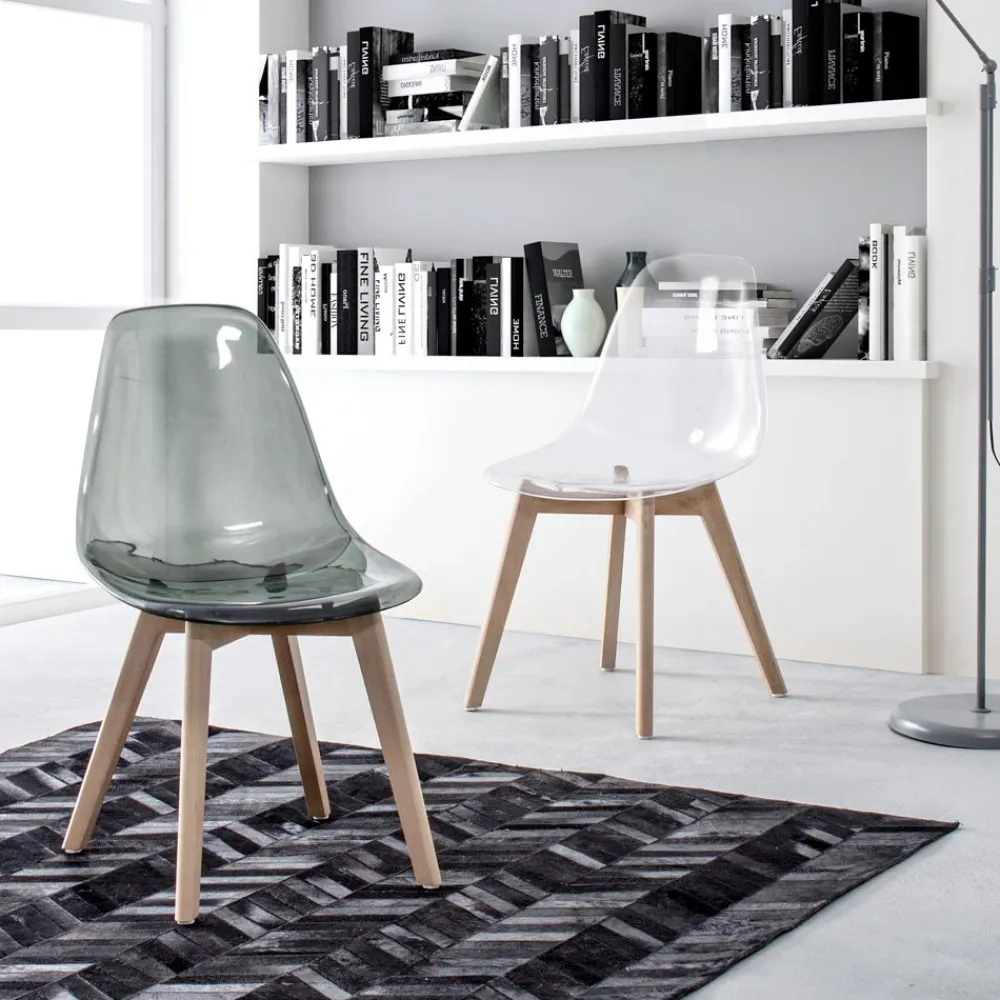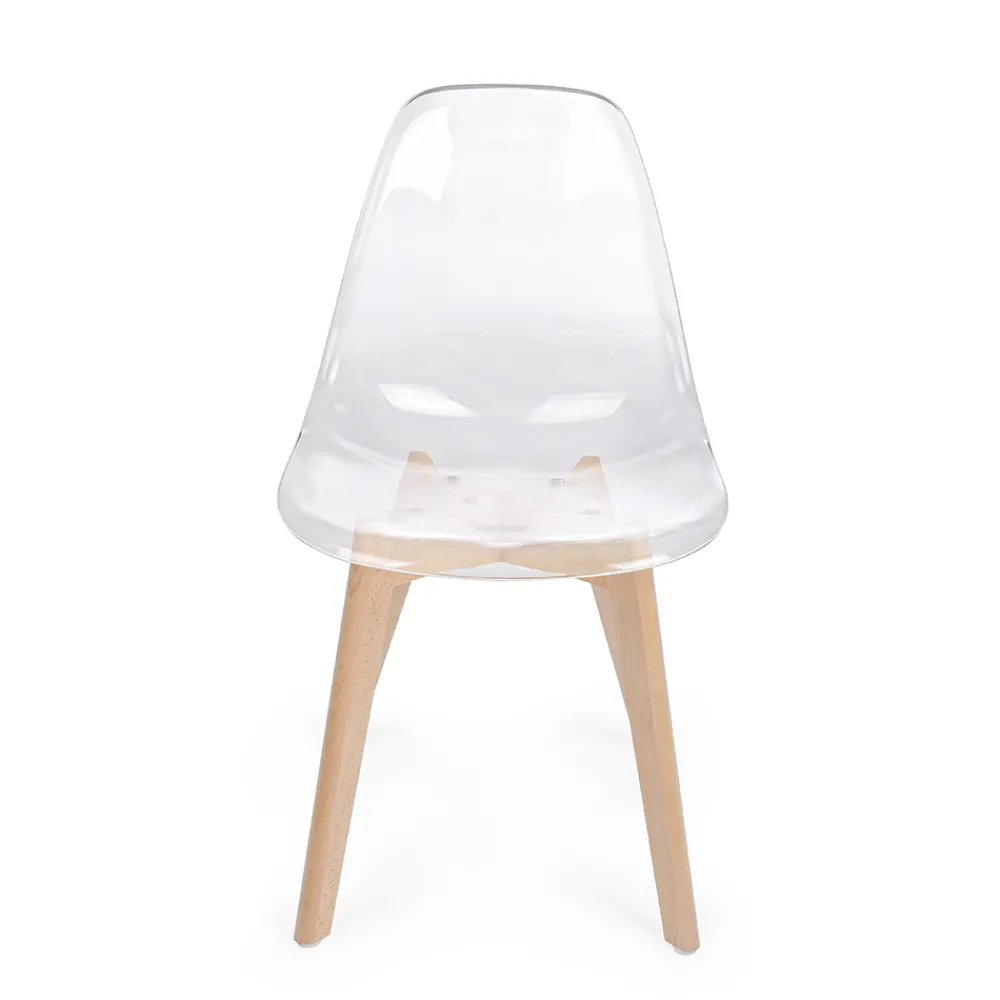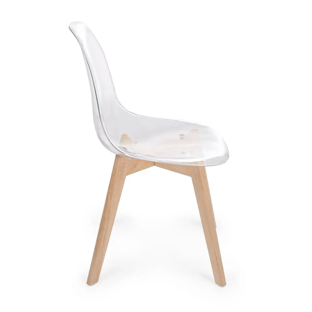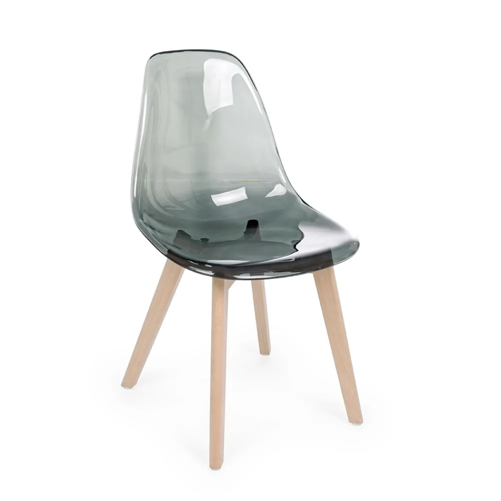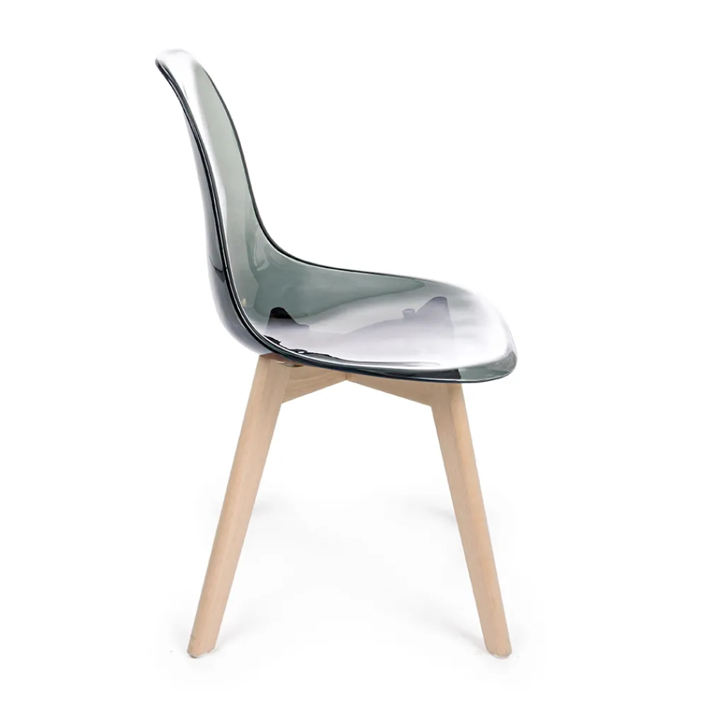 Küchenstuhl aus Buchenholz und Polycarbonatsitz in 2 Ausführungen, 4 Stück.