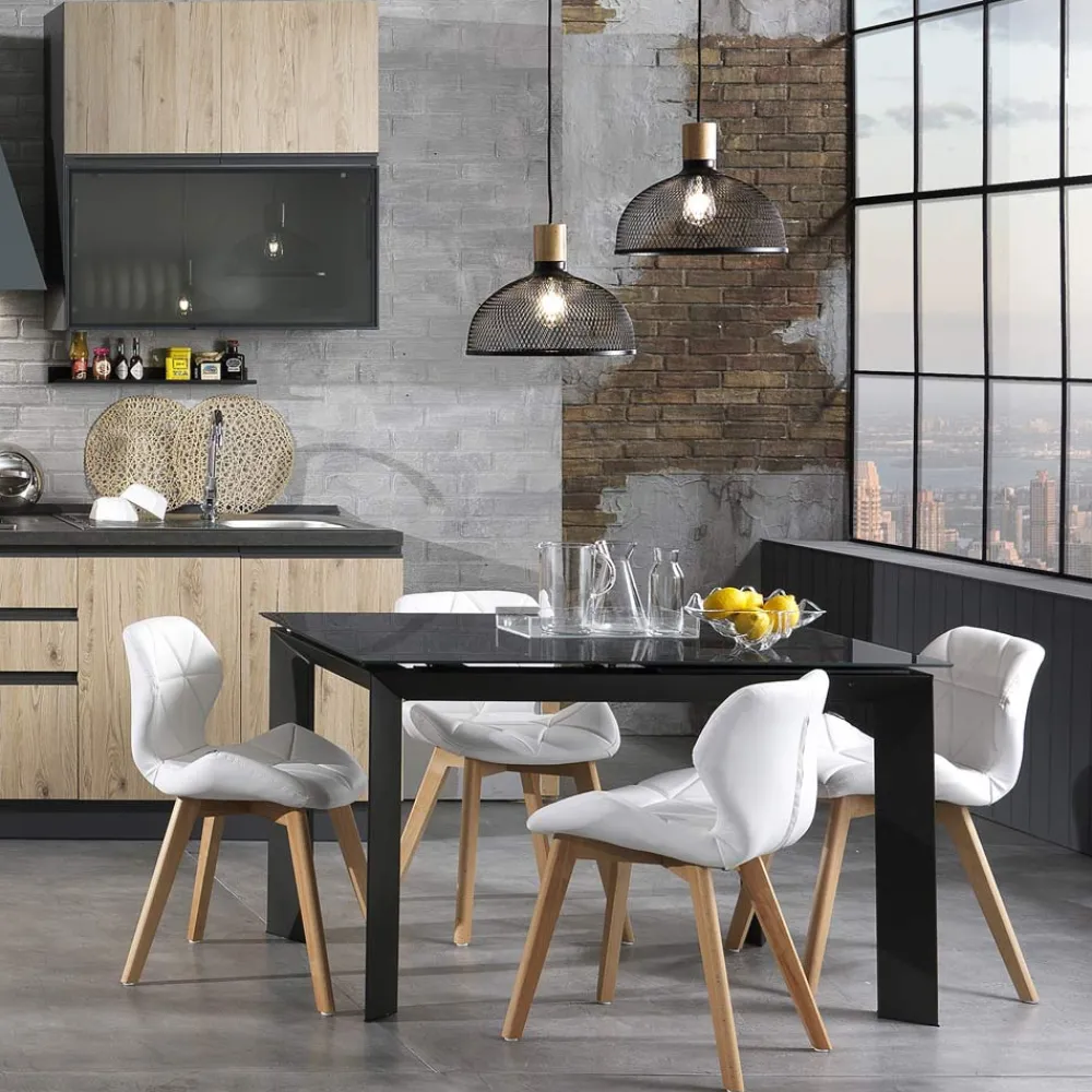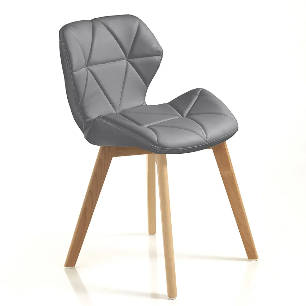 Küchen- oder Esszimmerstuhl mit Sitz aus Kunstleder mit geometrischem Muster und Beinen aus Massivholz mit Eichenfinish . Dieses Möbelstück trägt dazu bei, den Stil Ihres Hauses mit einem modernen und raffinierten Design zu vervollständigen und gleichzeitig dank seiner exklusiven und eleganten Ästhetik der Umgebung Persönlichkeit und Charakter zu verleihen.