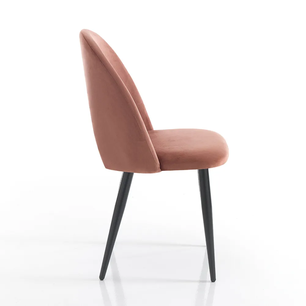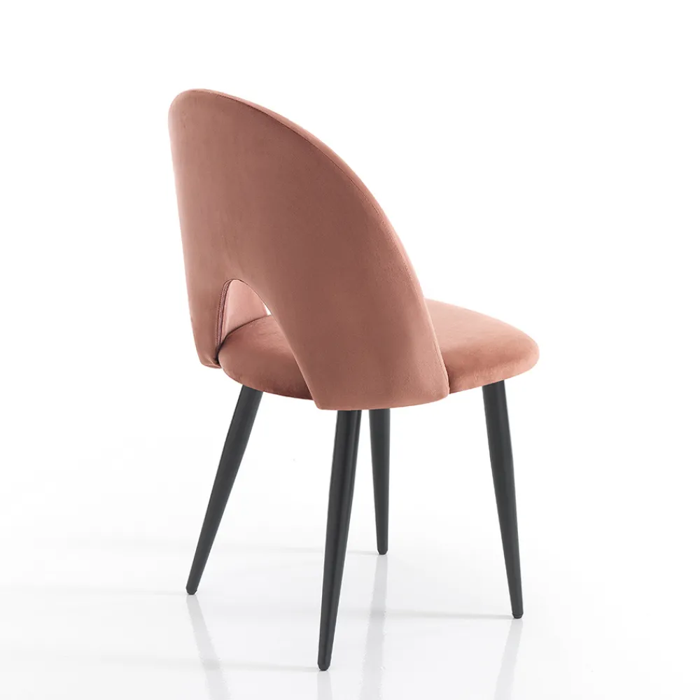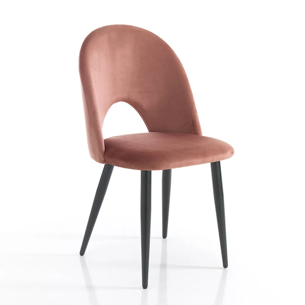 Küchenstuhl mit Gestell aus mattschwarz lackiertem Metall und gepolsterter Sitzfläche mit Samteffekt bezogen . Ein essentielles Design, aber mit starker visueller Wirkung dank der wunderbaren Wirkung der Beschichtung, die dem Produkt seine elegante und raffinierte Persönlichkeit verleiht. Die perfekte Kombination mit dem matten Finish der Beine lässt einen einzigartigen Stuhl entstehen, der jede Einrichtungssituation in Wohnräumen wie Küchen oder Esszimmern, aber auch in Objekten wie Bars und Restaurants perfekt abrundet.