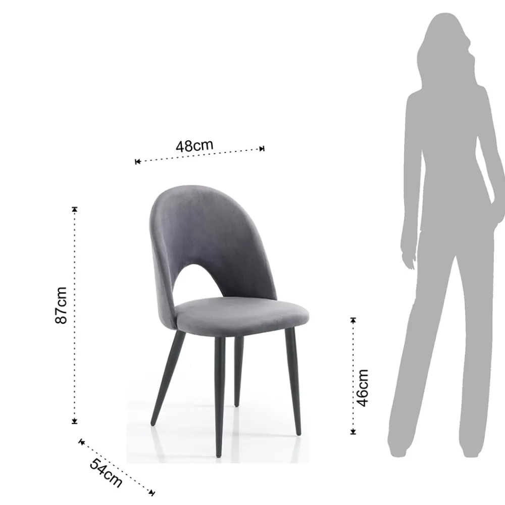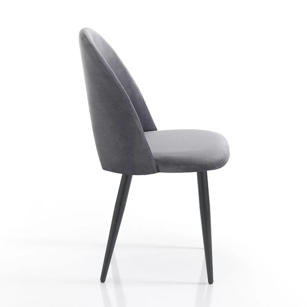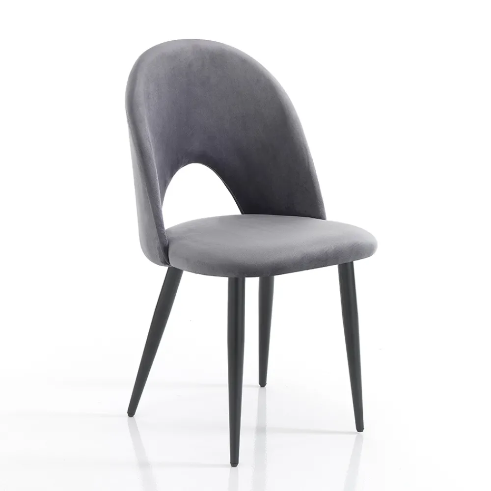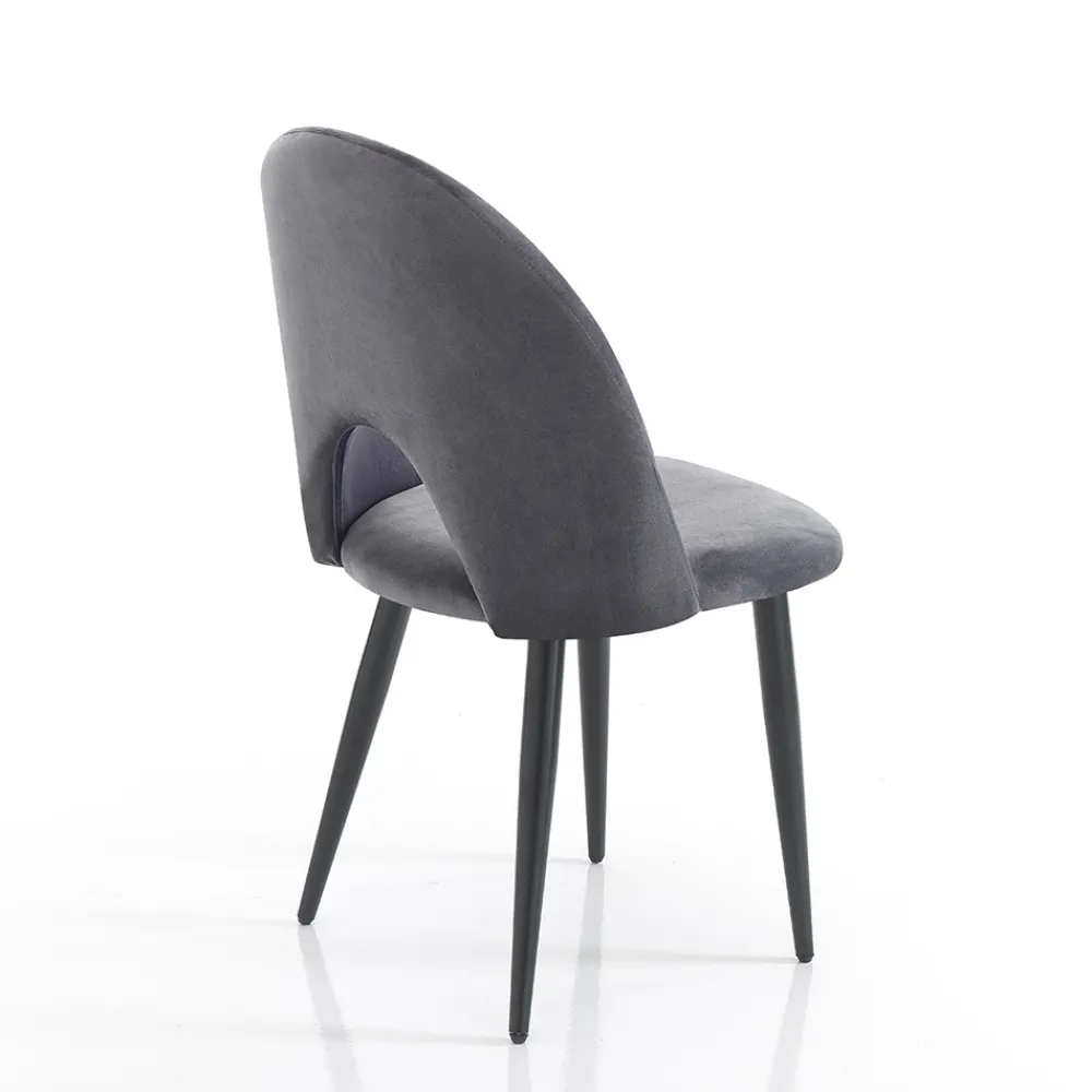 Küchenstuhl mit Gestell aus mattschwarz lackiertem Metall und gepolsterter Sitzfläche mit Samteffekt bezogen . Ein essentielles Design, aber mit starker visueller Wirkung dank der wunderbaren Wirkung der Beschichtung, die dem Produkt seine elegante und raffinierte Persönlichkeit verleiht. Die perfekte Kombination mit dem matten Finish der Beine lässt einen einzigartigen Stuhl entstehen, der jede Einrichtungssituation in Wohnräumen wie Küchen oder Esszimmern, aber auch in Objekten wie Bars und Restaurants perfekt abrundet.