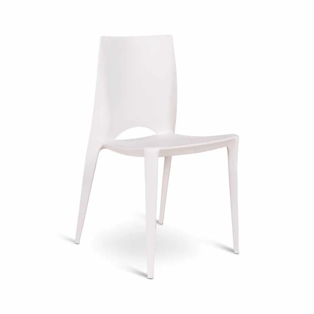 Stapelbare Stühle aus Polypropylen. Erhältlich in folgenden Farben: Weiß, Blau, Grau, Schwarz, Grün.
