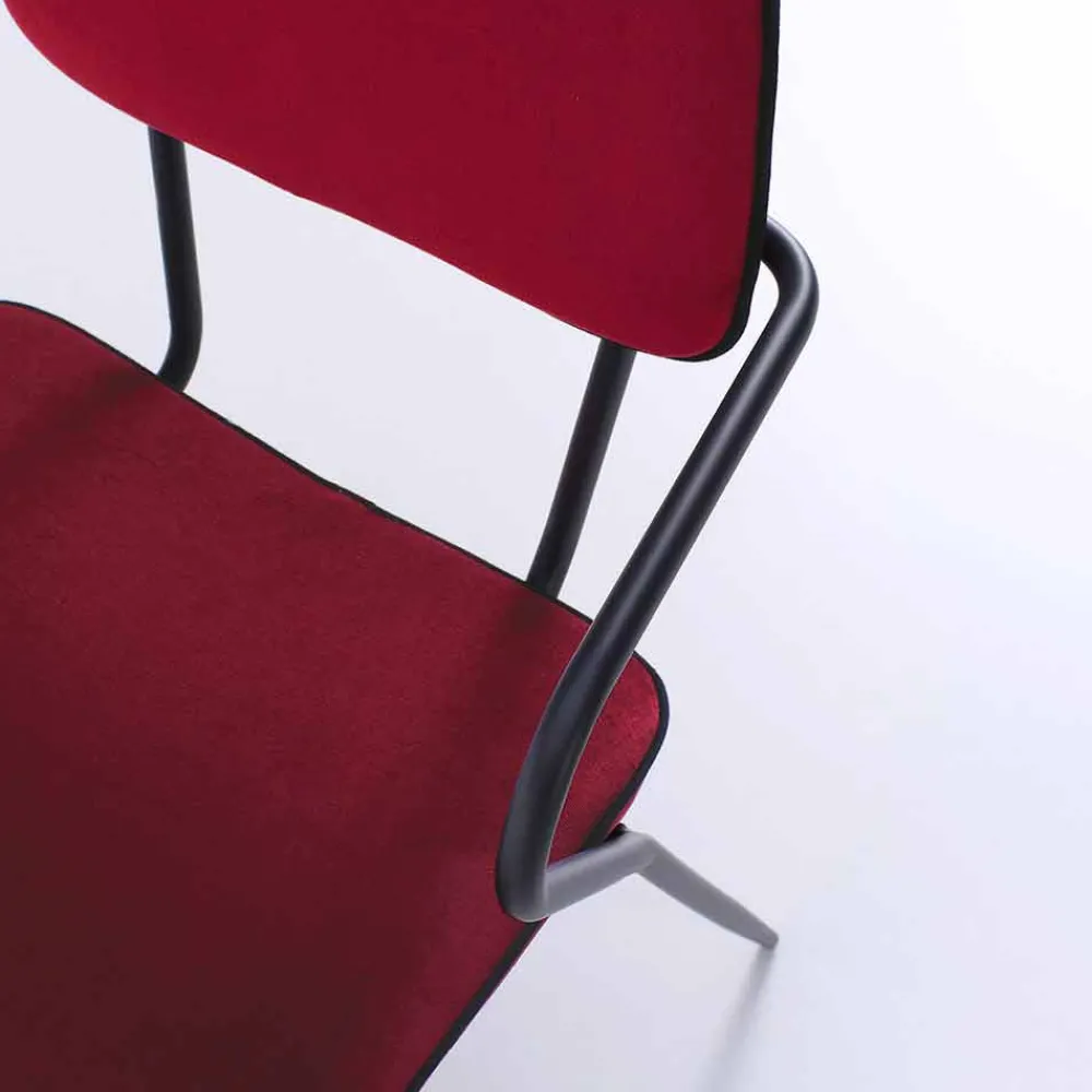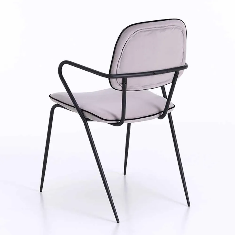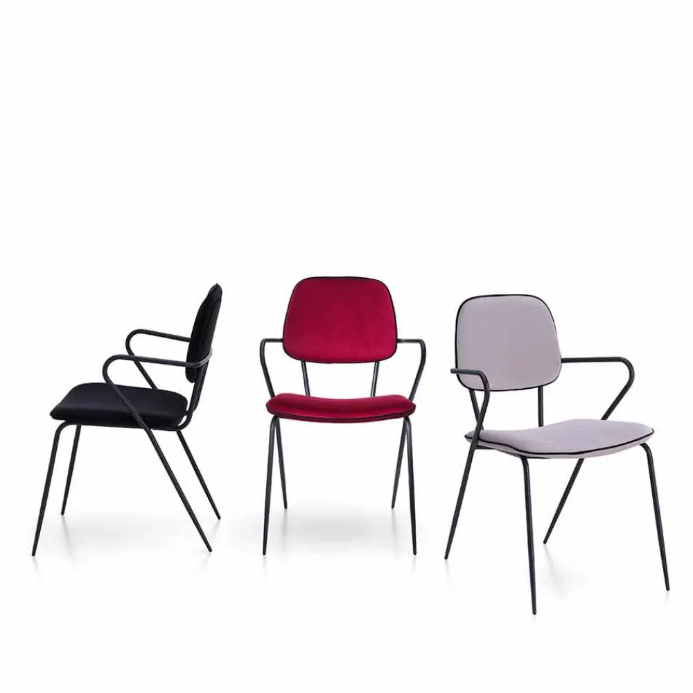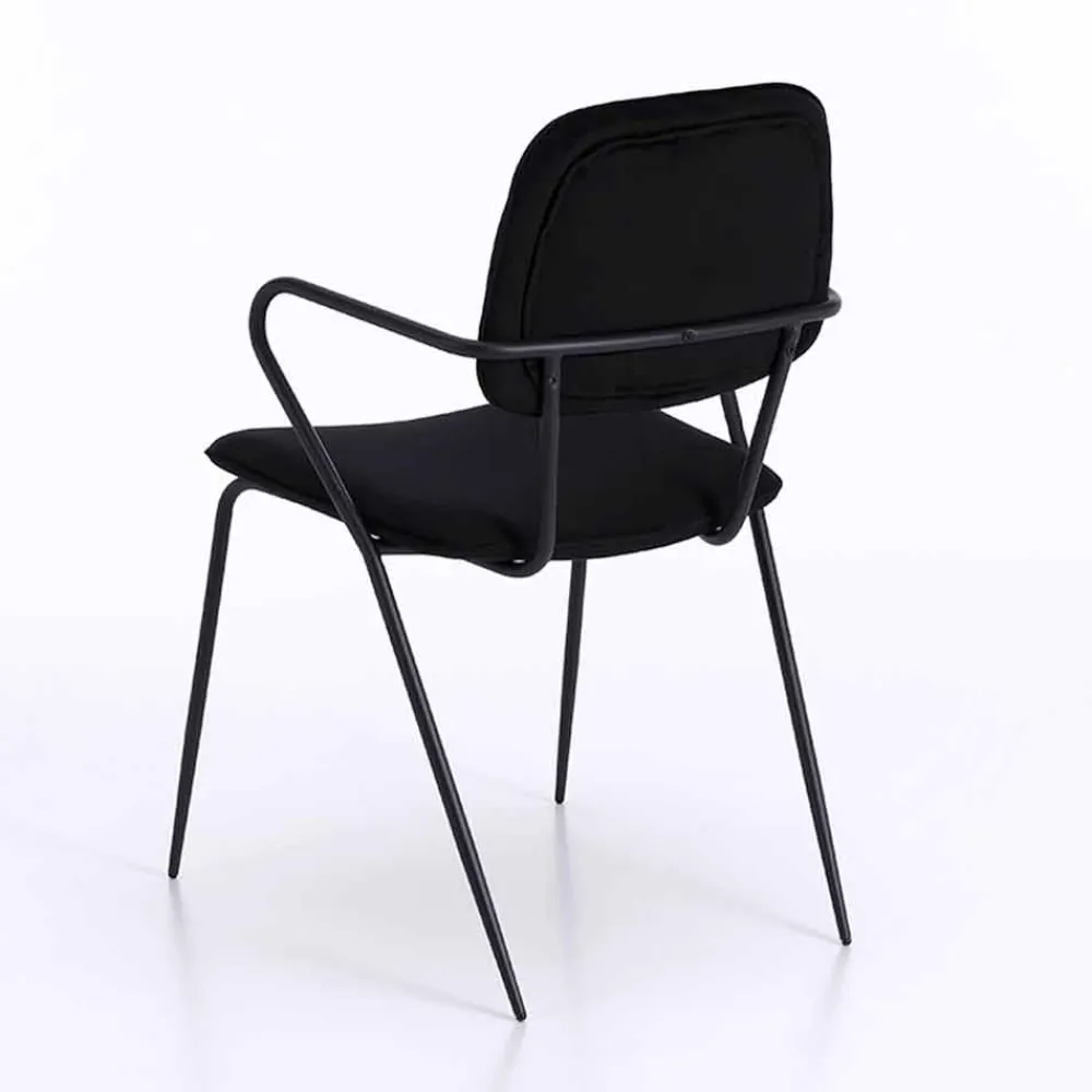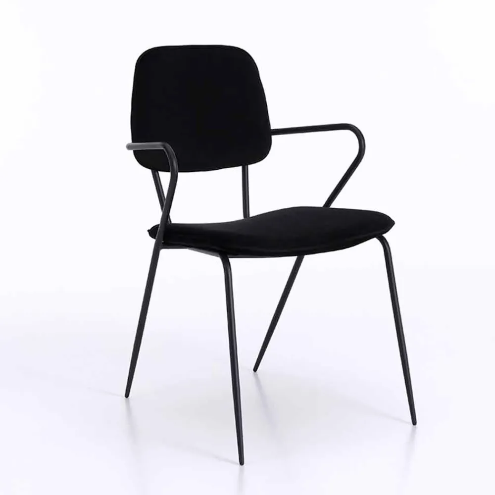 Dieser Stuhl zeichnet sich durch ein elegantes Design aus, das perfekt zu zeitgenössischen und modernen Einrichtungsstilen passt. Der Sitz und die Rückenlehne sind gepolstert und mit Samt bezogen, während die Struktur aus mattschwarz lackiertem Metall besteht und über zwei praktische und bequeme Armlehnen verfügt. Die Kombination von Oberflächen und Materialien macht das Produkt in seiner Art einzigartig und von großer optischer Wirkung, indem es Schönheit und Funktionalität vereint.
