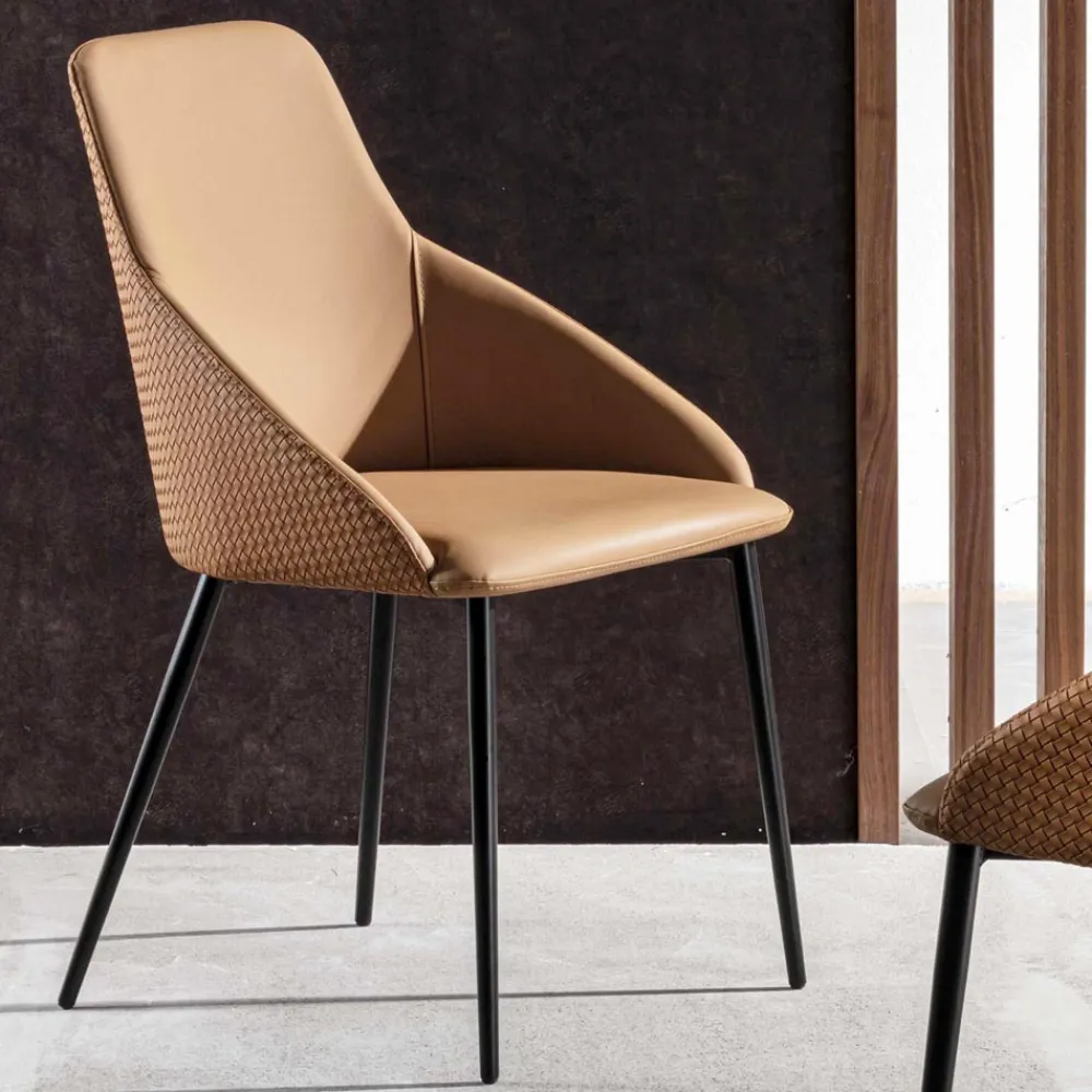 Moderner Stuhl, ideal für Esszimmer oder Küche mit Sitz aus Öko-Leder und Sockel aus schwarz lackiertem Metall . Die Besonderheit dieses wunderbaren Möbelstücks wird durch die besondere Prägung an der Außenseite des Sitzes dargestellt, die die Ästhetik bereichert und eine raffinierte Note verleiht. Seine ungewöhnliche Form trägt auch dazu bei, ein Produkt zu schaffen, dessen Konzept auf Komfort , Eleganz und Funktionalität basiert, während die Wahl des lackierten Metalls für die Konstruktion der Beine alles noch moderner und innovativer macht, sodass sich der Stuhl perfekt an jeden zeitgenössischen Einrichtungsstil anpassen kann was es den wahren Protagonisten darstellen kann, der jede Aufmerksamkeit gewinnt.