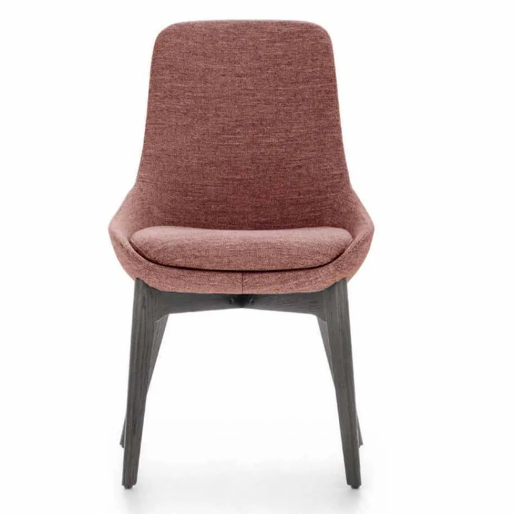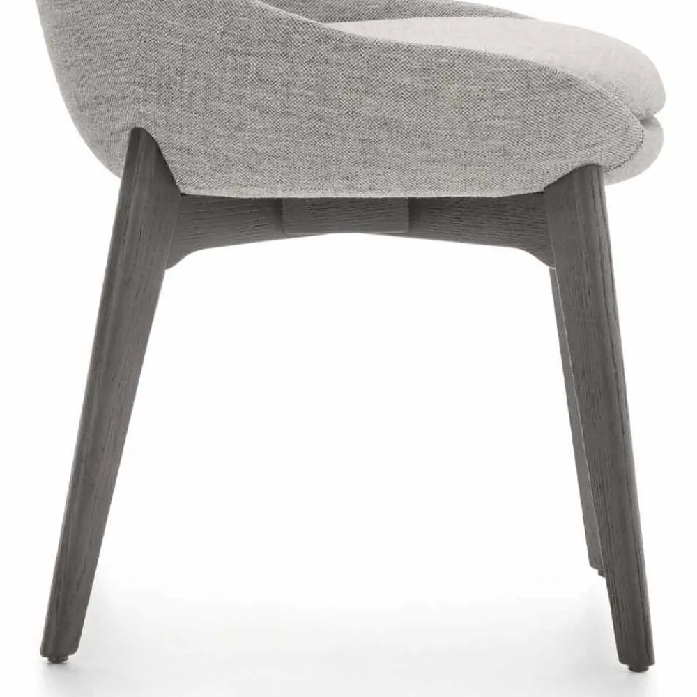 Moderner Stuhl für Esszimmer oder Küche, hergestellt in Italien, mit einem inneren Stahlrahmen, der mit kaltgeschäumtem Polyurethan bezogen und vollständig mit Stoff bezogen ist (nicht abnehmbar), mit Holzfuß in Eukalyptus-Finish .