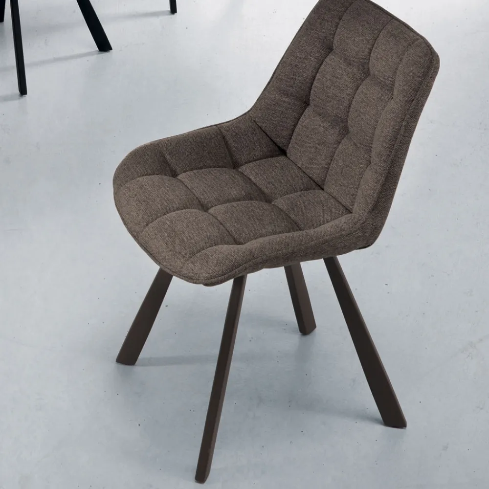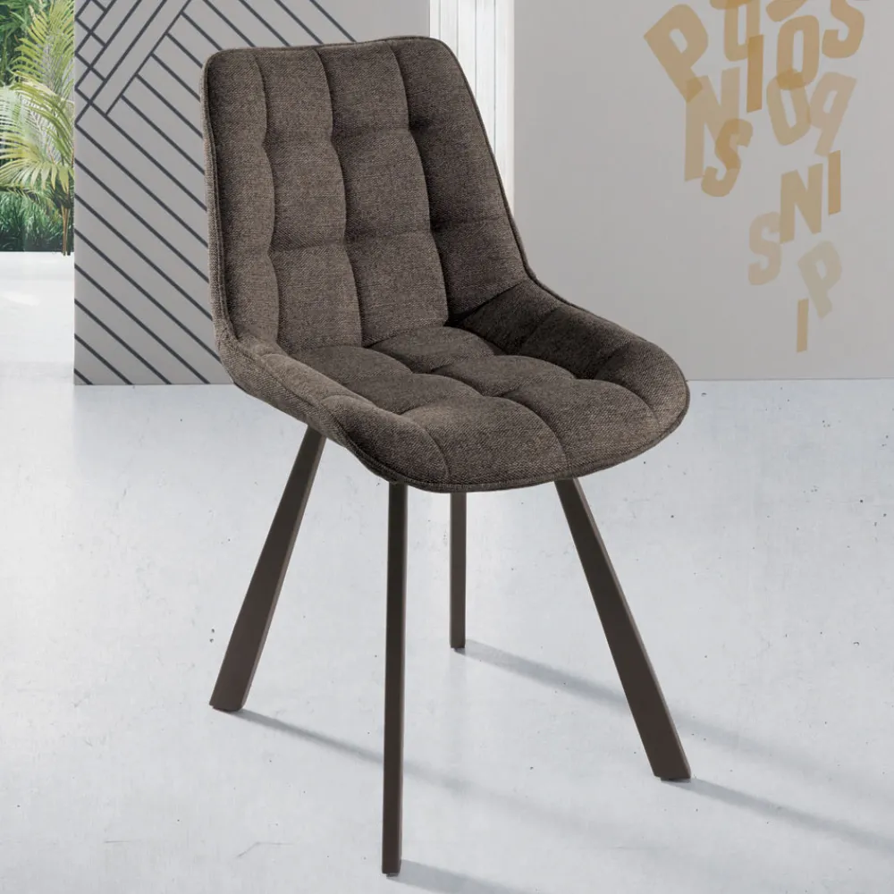 Gepolsterter Esszimmerstuhl und 4-teilige Metallstruktur.