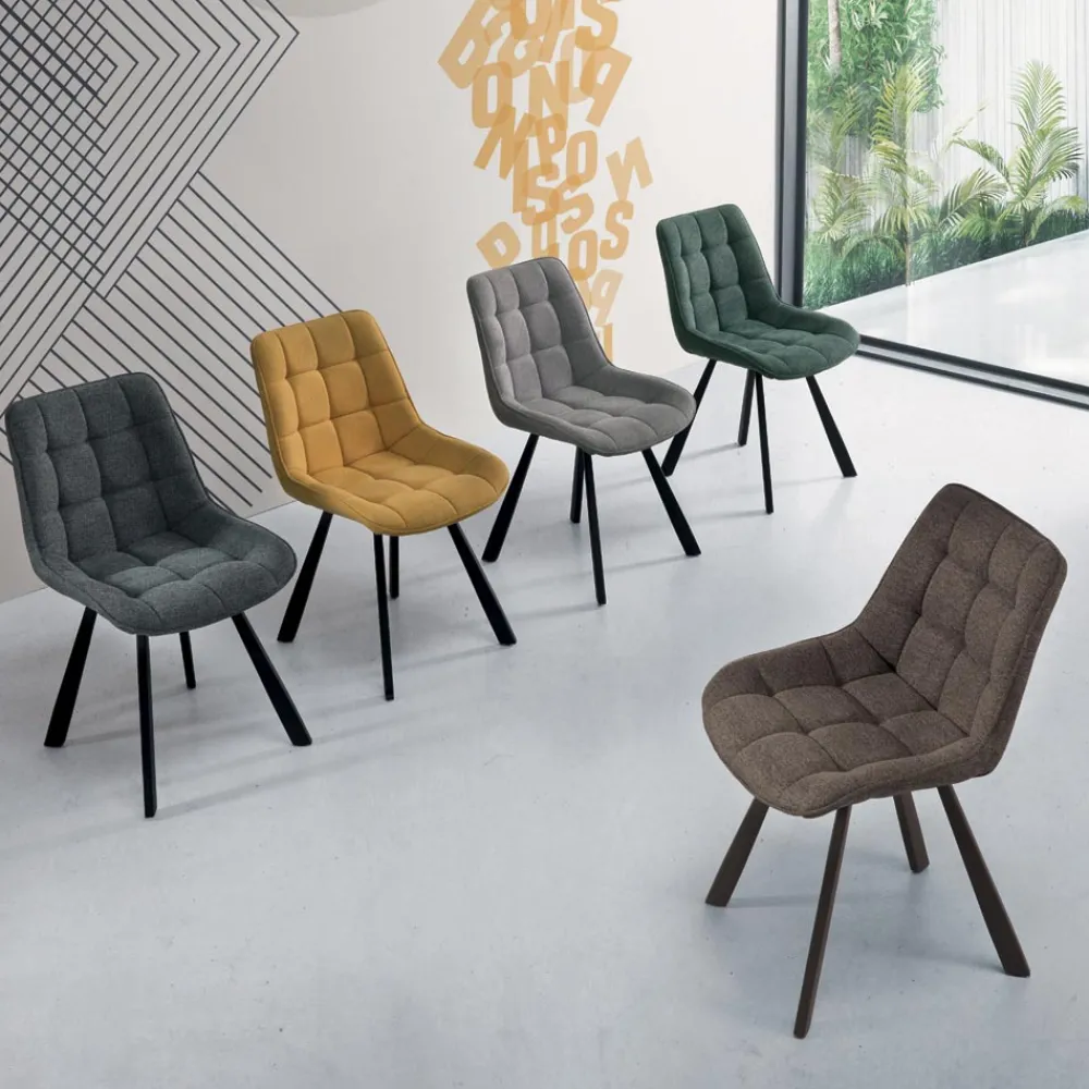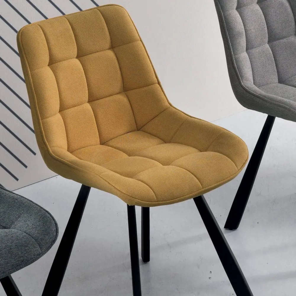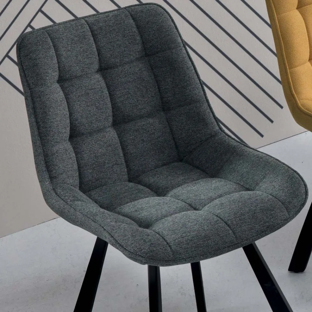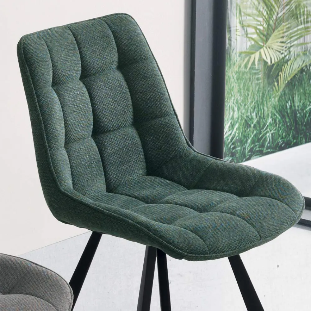 Der Esszimmerstuhl besteht aus gepolstertem Stoff und einer Metallstruktur , die die Entspannung für die ganze Familie fördert und sich durch die Breite des Sitzes auszeichnet, die mehr Komfort bietet. In ihm vereinen sich Design und Schlichtheit und es ist das Ergebnis einfacher Materialien, die durch die Verbindung mit dem geschwungenen und eleganten Design ein Produkt mit originellem Stil zum Leben erwecken, das sich perfekt für jede Umgebung eignet. Konisch und schlank findet der Stuhl seinen perfekten Platz neben Tischen mit modernem oder minimalistischem Design. Ideal im Esszimmer sowie in der Küche, wird es Umgebungen mit Design und Funktionalität personalisieren.