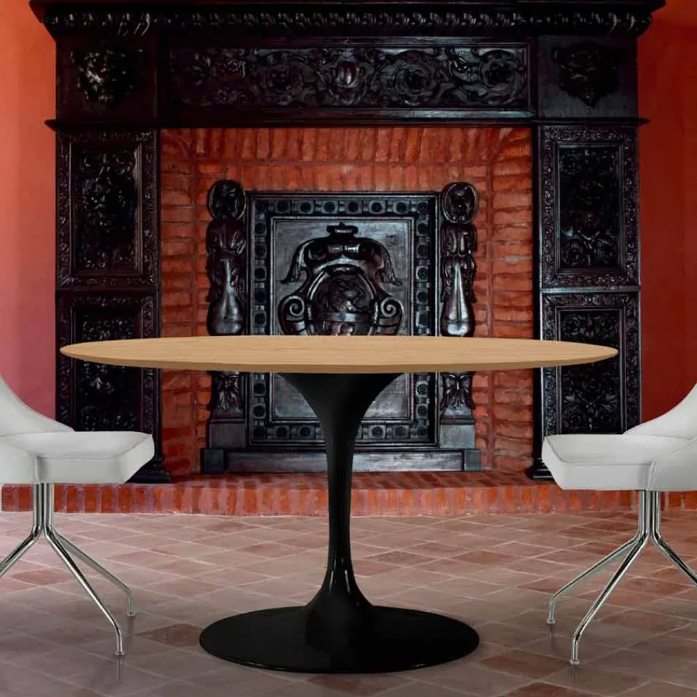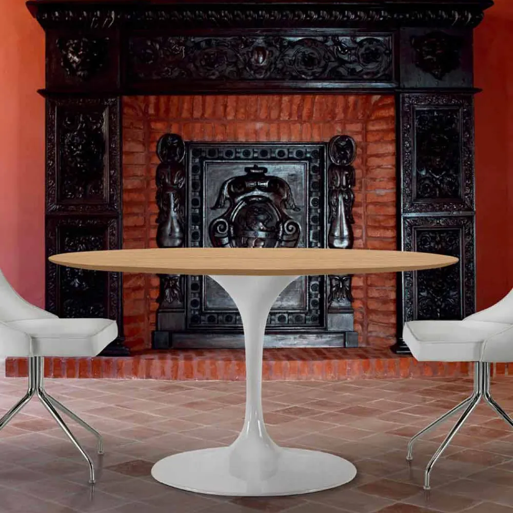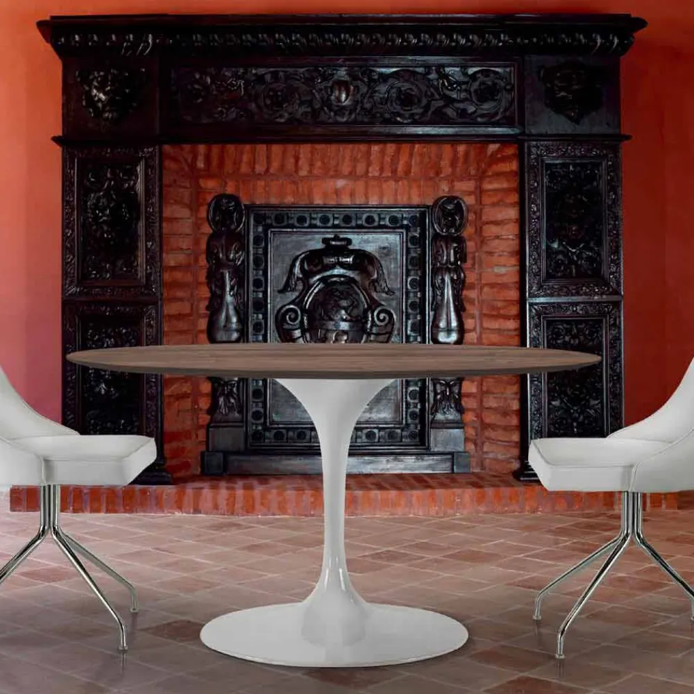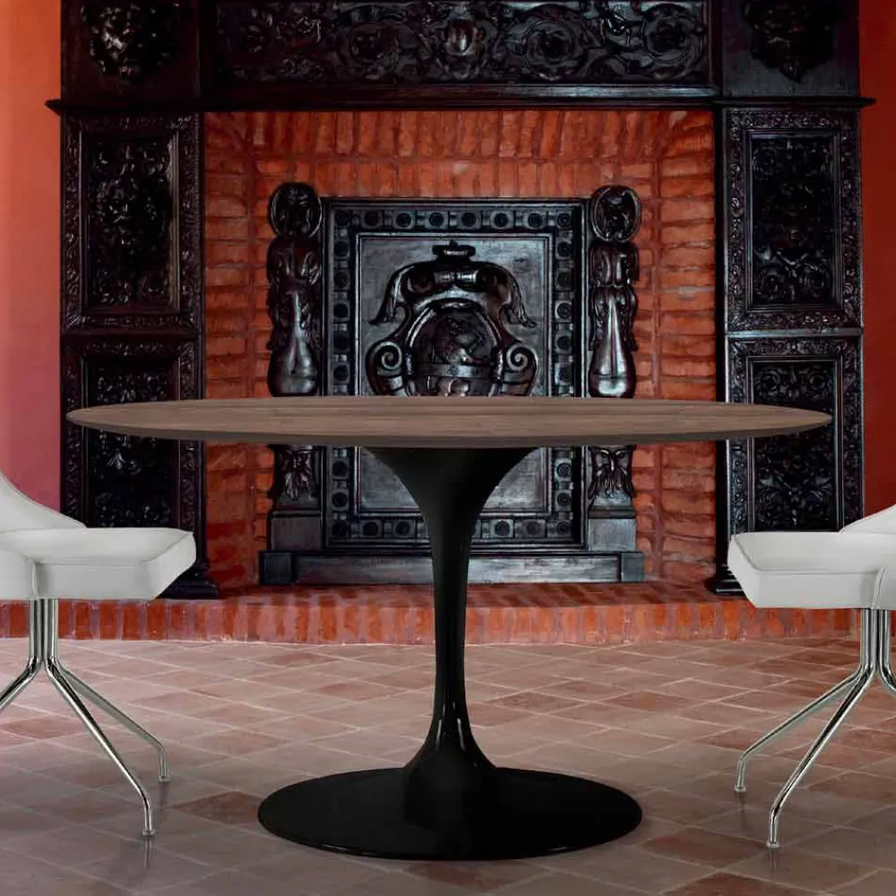 Esstisch mit runder Platte aus HPL-Laminat, hergestellt in Italien, hohe Qualität.