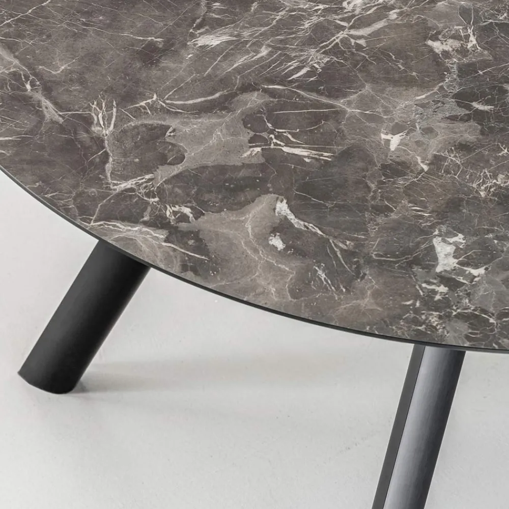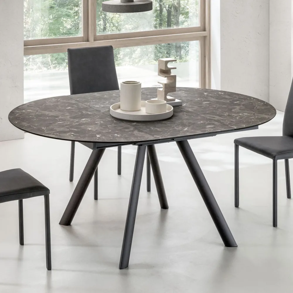 Ausziehbarer runder Wohnzimmertisch aus HPL und Metall