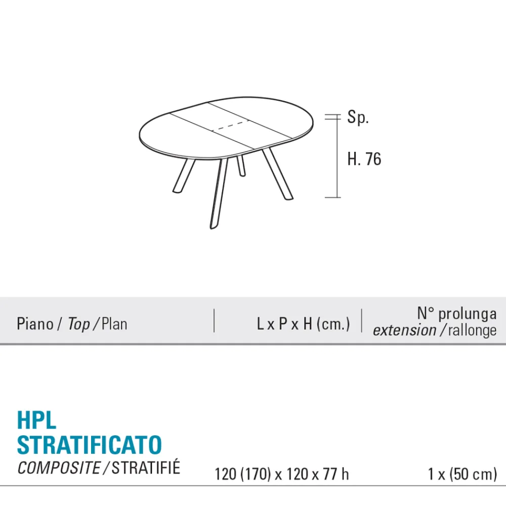 Kompakt, elegant und umwandelbar: Dieser ausziehbare Tisch aus HPL und Metall ist für alle gedacht, die zeitgenössisches Design lieben, ohne auf Funktionalität und Widerstandsfähigkeit verzichten zu müssen.