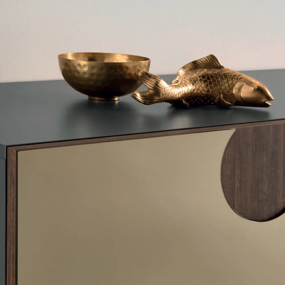 Wohnzimmer-Sideboard aus Melamin mit Glaseinsätzen mit Spiegeleffekt Made in Italy.