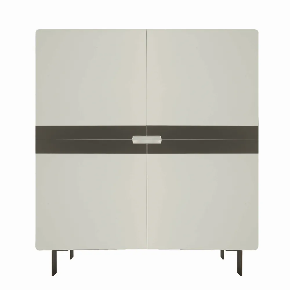 Wohnzimmer-Sideboard im modernen Stil, komplett in Italien hergestellt, bestehend aus Eisenfüßen in Nickel-Finish und Schale aus weißem MDF , komplett mit Griff aus massivem Tulipier-Holz mit Nickel-Finish und Innenregalen aus MDF. Die Verwendung einfacher, aber widerstandsfähiger Materialien verwandelt dies hergestellt in Möbeln mit großer Vielseitigkeit und einem attraktiven und interessanten Aussehen. Ein vielseitiges und originelles Design , das für verschiedene Verwendungen in verschiedenen Bereichen des Hauses konzipiert ist und die Möbel auf exklusive Weise nach Ihrem Geschmack und Ihren Bedürfnissen vervollständigt.