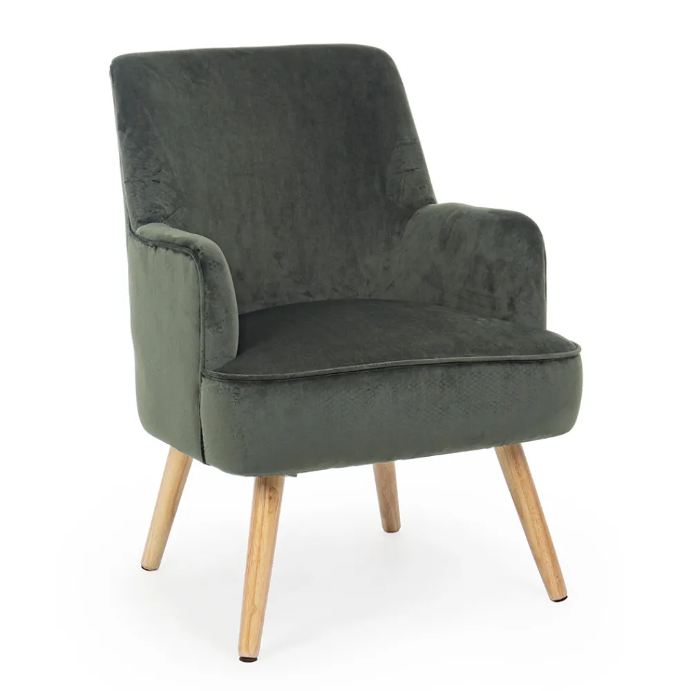Wohnzimmersessel aus Holz und Samteffekt Sitz 4 Ausführungen.