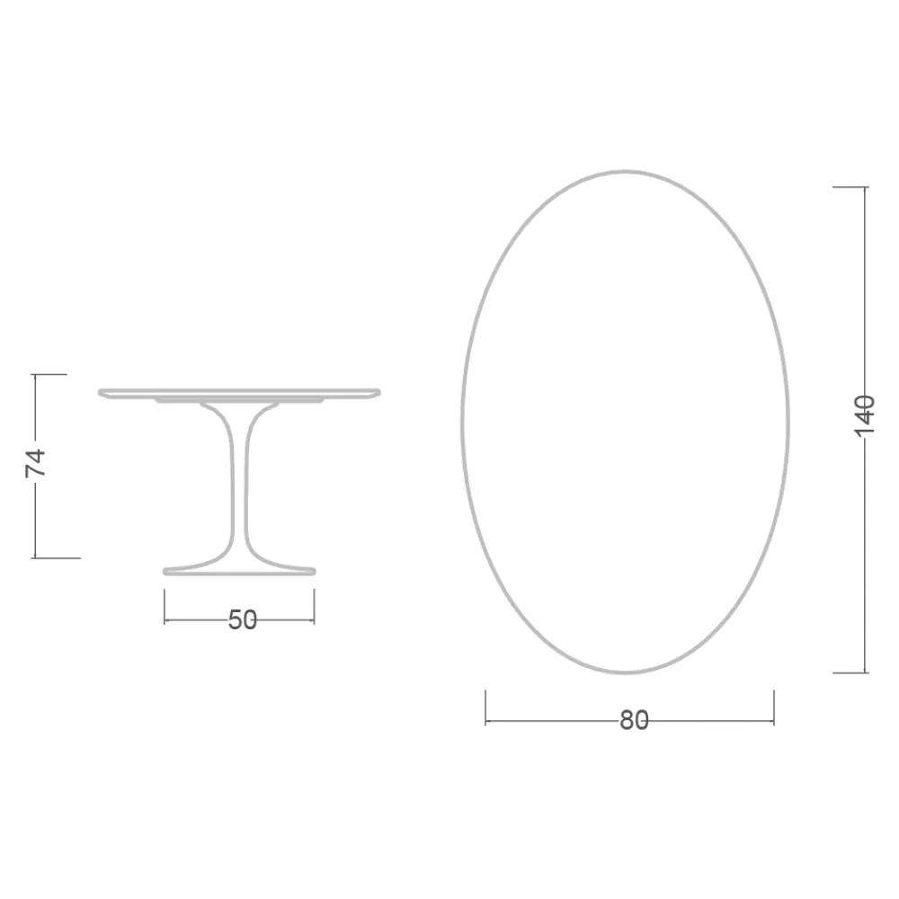 - Tischplatte: 140 x 80 / Runder Sockel: Durchmesser 50 cm x Höhe 74 cm
