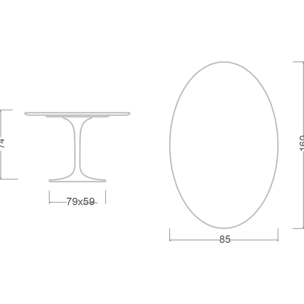 - Tischplatte: 160 x 85 / Ovaler Sockel: 79 x 59 cm x H 73 cm