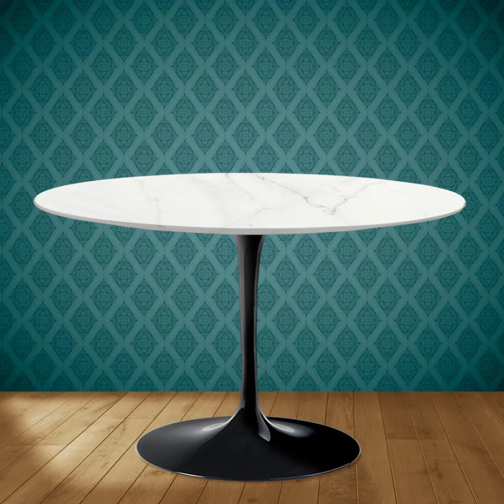 Esstisch mit runder Platte aus rem Keramik mit mattem Calacatta Lincoln Marmor Effekt und Untergestell aus poliertem Aluminium, komplett Made in Italy. Die linearen und raffinierten Oberflächen schaffen ein Element, das sich leicht in Wohnumgebungen und Küchen mit verschiedenen Stilen einfügt. Die Verbindung zwischen der Keramik und dem polierten Aluminium macht diesen Tisch geeignet für alle Gelegenheiten, um einen einladenden Raum zu schaffen. Die Schlüsselwörter, um dieses Produkt zu beschreiben, sind Praktikabilität und Funktionalität, ohne dabei die Eleganz zu vergessen, die durch die besondere Farbgebung und Grafik der rem Keramik gegeben ist.