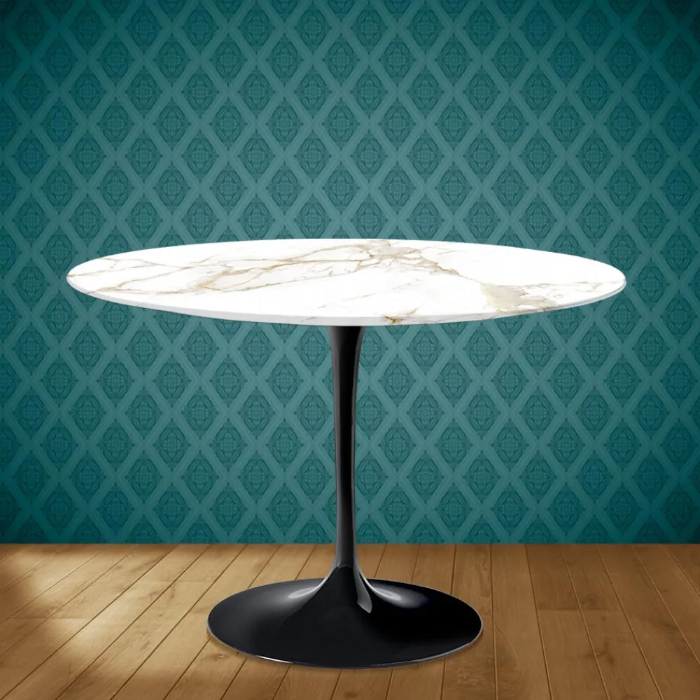 Esstisch komplett Made in Italy mit runder Platte aus entzo Keramik, matt calacatta gold marmoriert und Untergestell aus poliertem Aluminium. Dieser Tisch schafft es, Funktionalität und Zweckmäßigkeit mit Eleganz und Raffinesse zu verbinden, dank seiner einfachen Ausführungen und der besonderen entzo Keramik. Das Produkt hat eine geradlinige und raffinierte Form, die es geeignet macht, die Einrichtung jedes Wohnzimmers und jeder Küche zu vervollständigen und eine einzigartige Note zu verleihen. Die Entzo-Keramik hat eine sehr komplexe und raffinierte Farbe und Grafik, die dazu beitragen, den Raum einladend und unvergesslich zu machen. Dieser Tisch ist die perfekte Idee, um jeden Ort mit Geschmack und Funktionalität einzurichten.