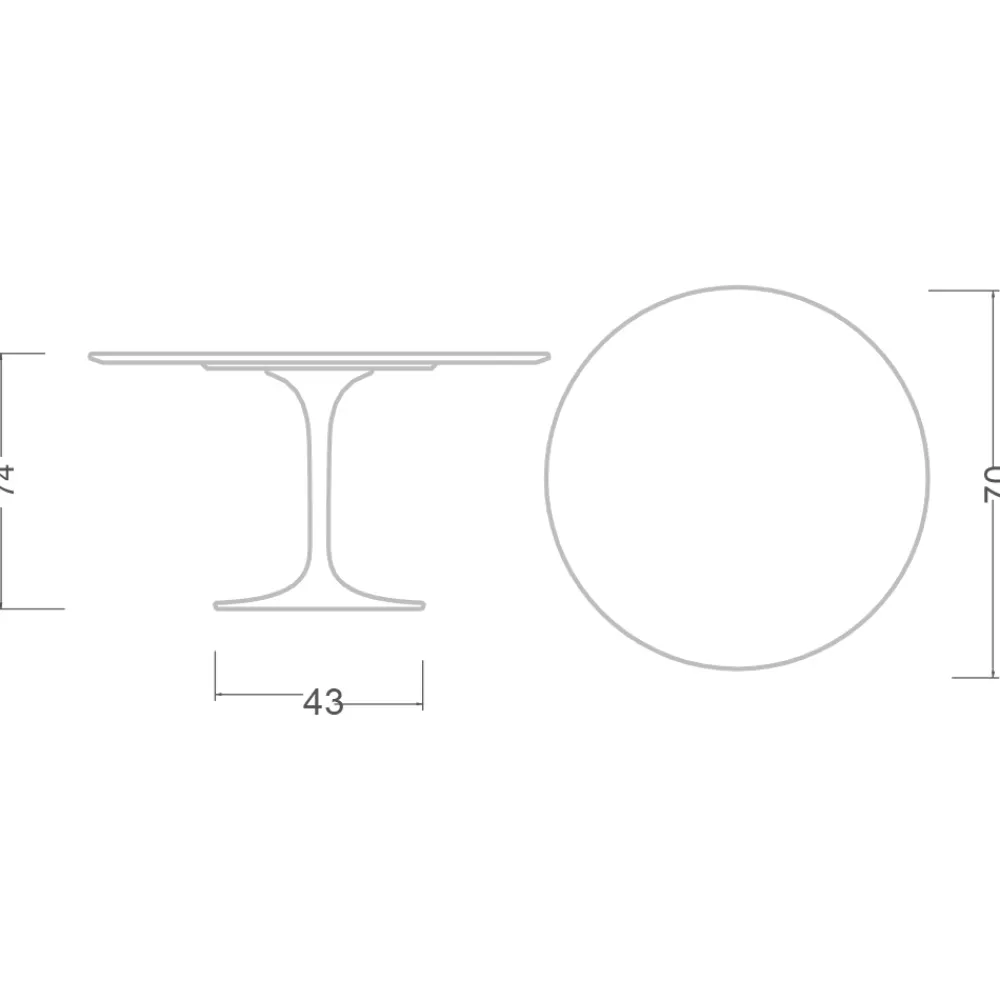 - Tischplatte Durchmesser 70 x Höhe 74 cm;
