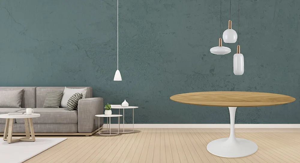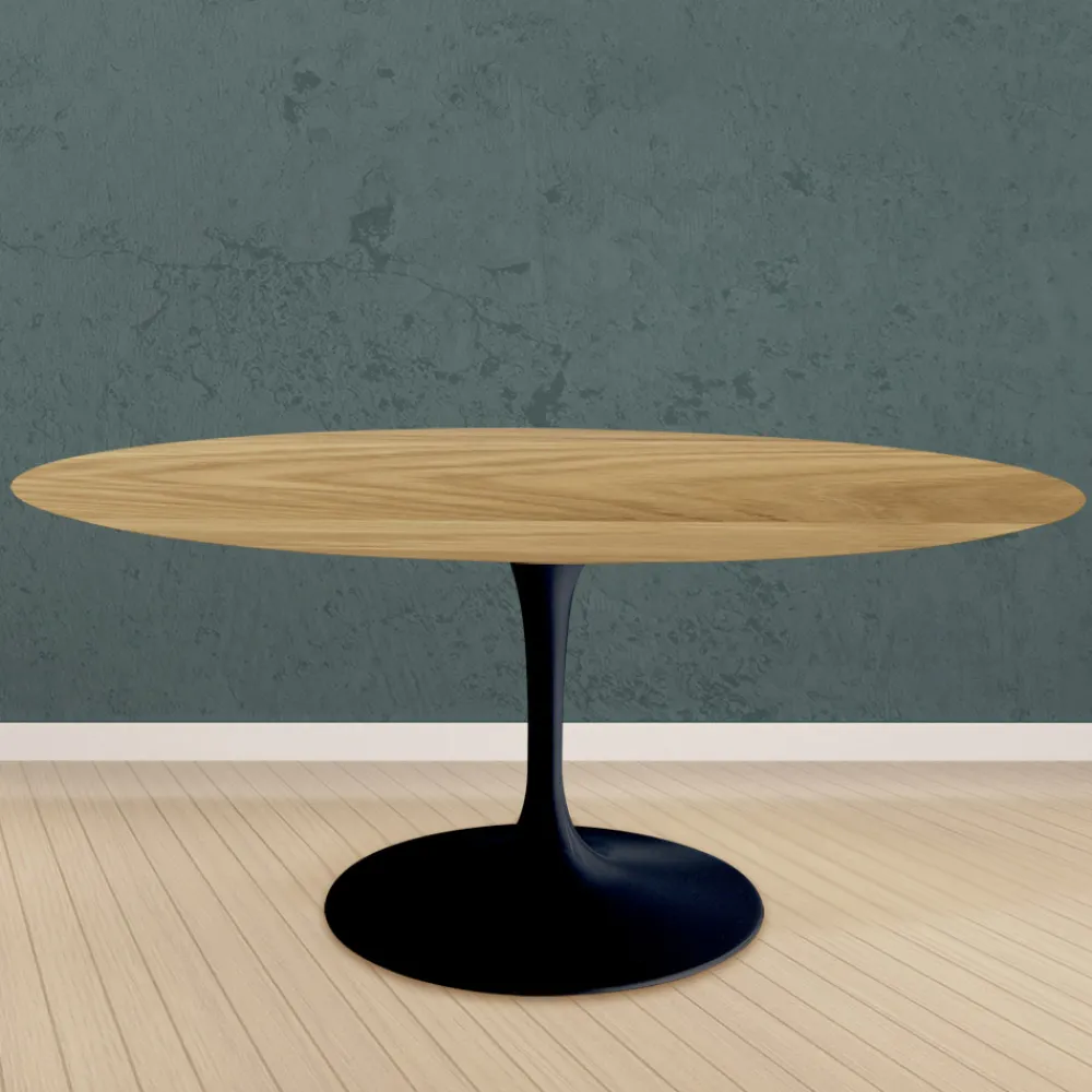 Runder Esstisch aus natürlicher Eiche und poliertem Aluminium Made in Italy