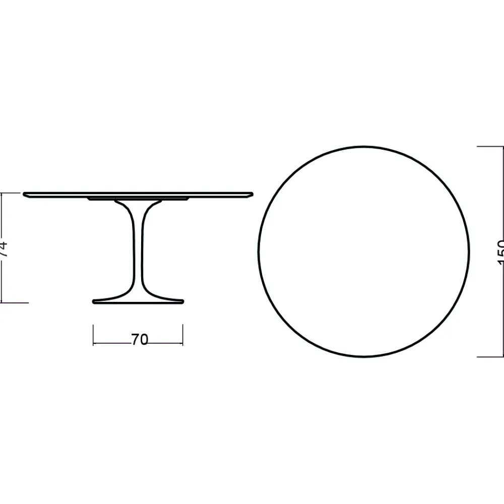 - Tischplattendurchmesser 150 x Höhe 74 cm / Fußdurchmesser 70 cm