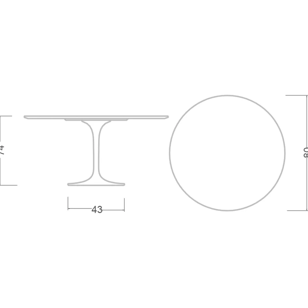 - Tischplatte Durchmesser 80 x Höhe 74 cm;