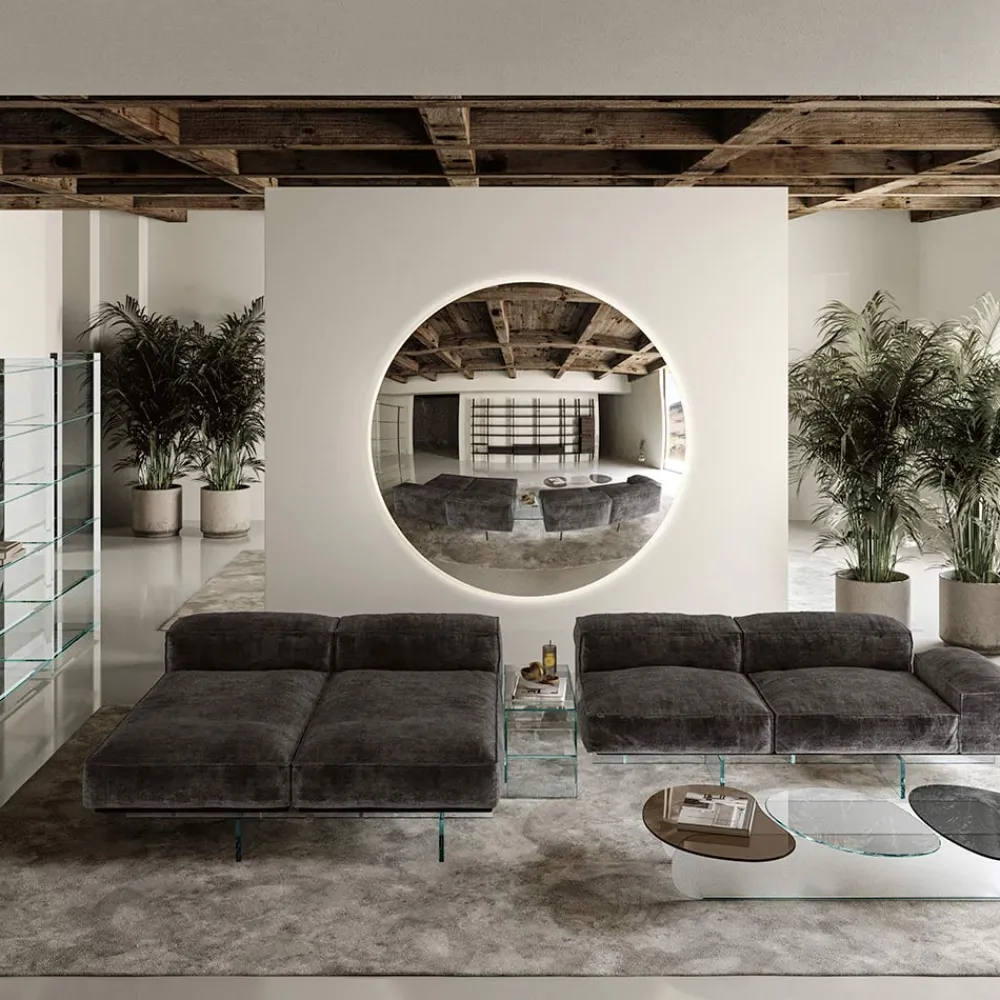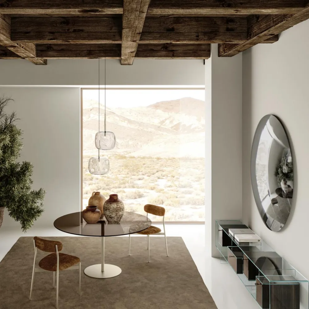 Dieser runde Spiegel ist ein Sinnbild für Schlichtheit und Minimalismus , ein Einrichtungsgegenstand, der sich perfekt in jede moderne oder traditionelle Umgebung einfügt. Seine reflektierende, makellose Oberfläche verstärkt nicht nur Licht und Raum, sondern dient auch als eleganter Blickfang in jedem Raum.