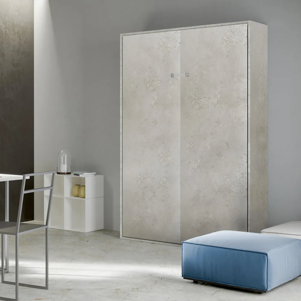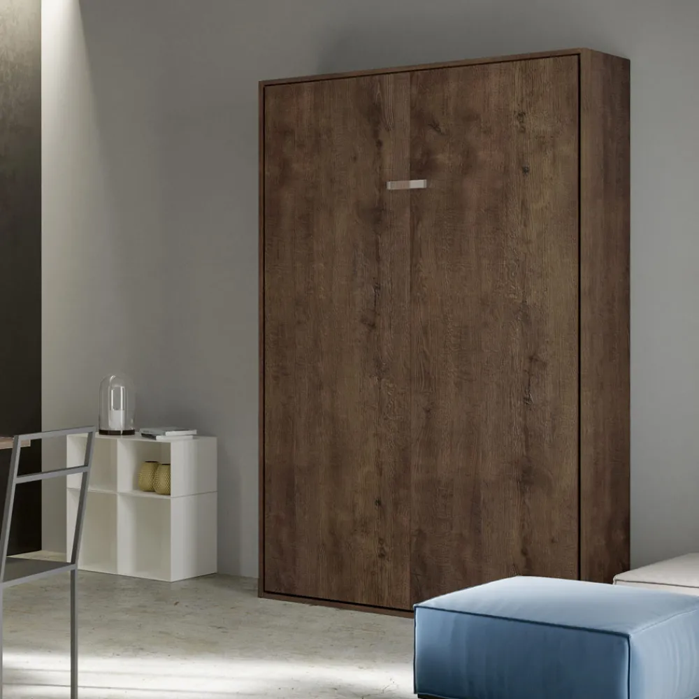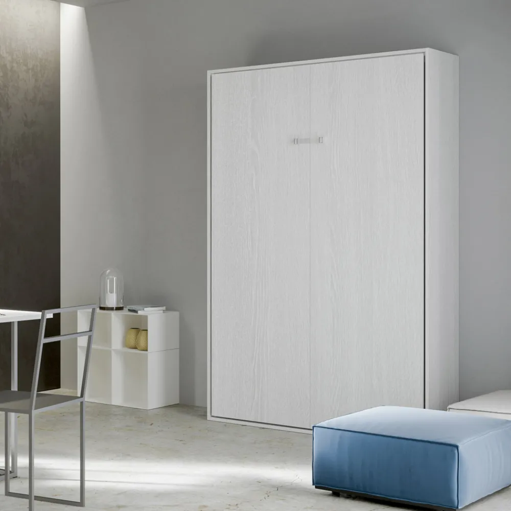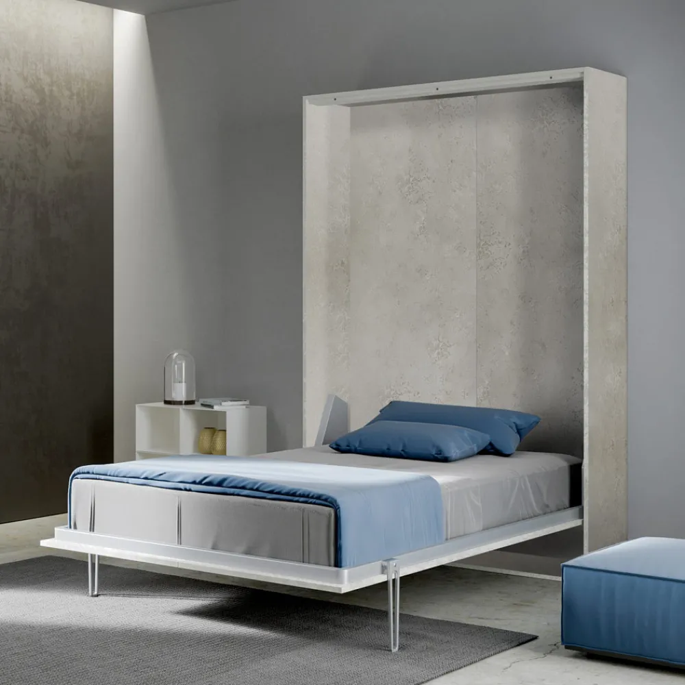 Der Bettrahmen besteht aus 18 mm dicken Melamin-Spanplatten und gewährleistet so Widerstandsfähigkeit und Langlebigkeit. Der Öffnungsmechanismus ist sanft und sicher und verwandelt die Wand mit einer einfachen Geste in ein bequemes Bett.