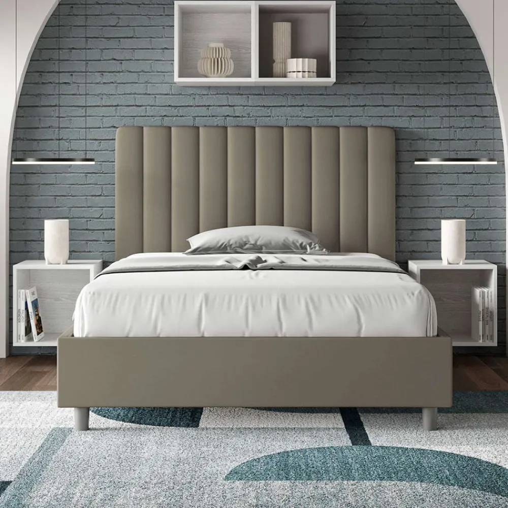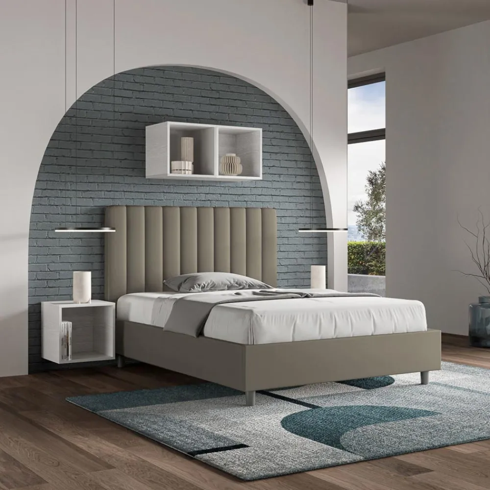 Französisches Bett 140×200 cm gepolstert aus Melaminpaneelen und mit Kunstleder bezogen, komplett Made in Italy.