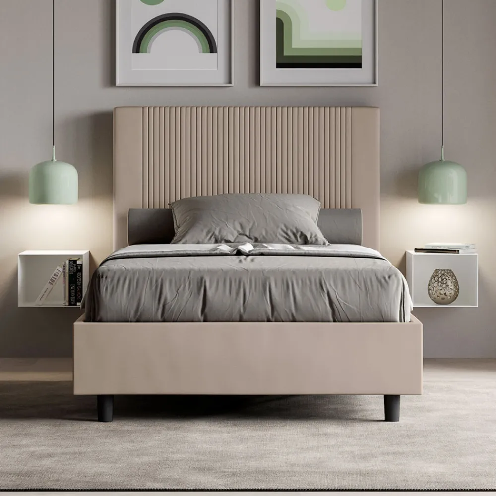 Französisches Bett 140×200 cm gepolstert und mit Kunstleder bezogen, Made in Italy