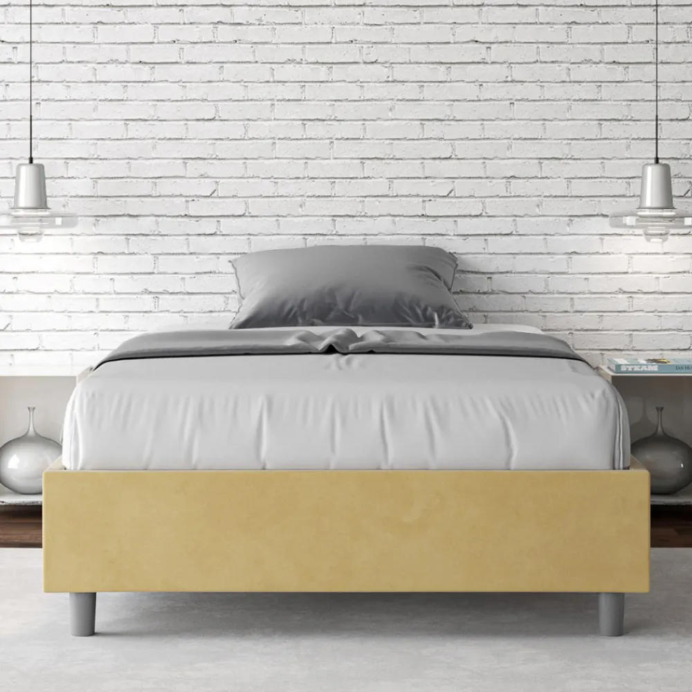 Französisches Bett 140×200 cm gepolstert und mit Mikrofaser bezogen, Made in Italy