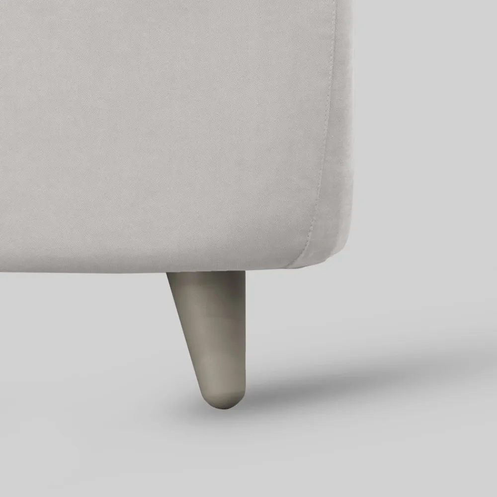 Modell ohne Ringbehälter: gepolsterter Bettrahmen mit unterstützter Basis inklusive und bequemem 11 cm hohen Fuß, der die Reinigung unter der Struktur ermöglicht.