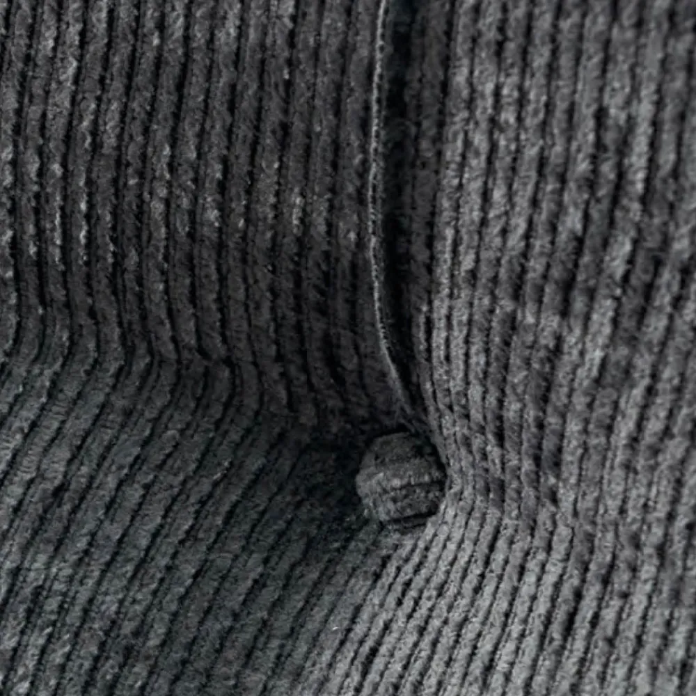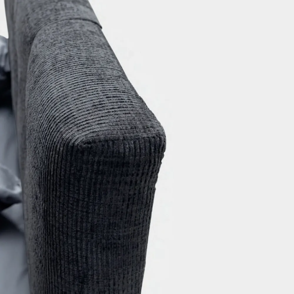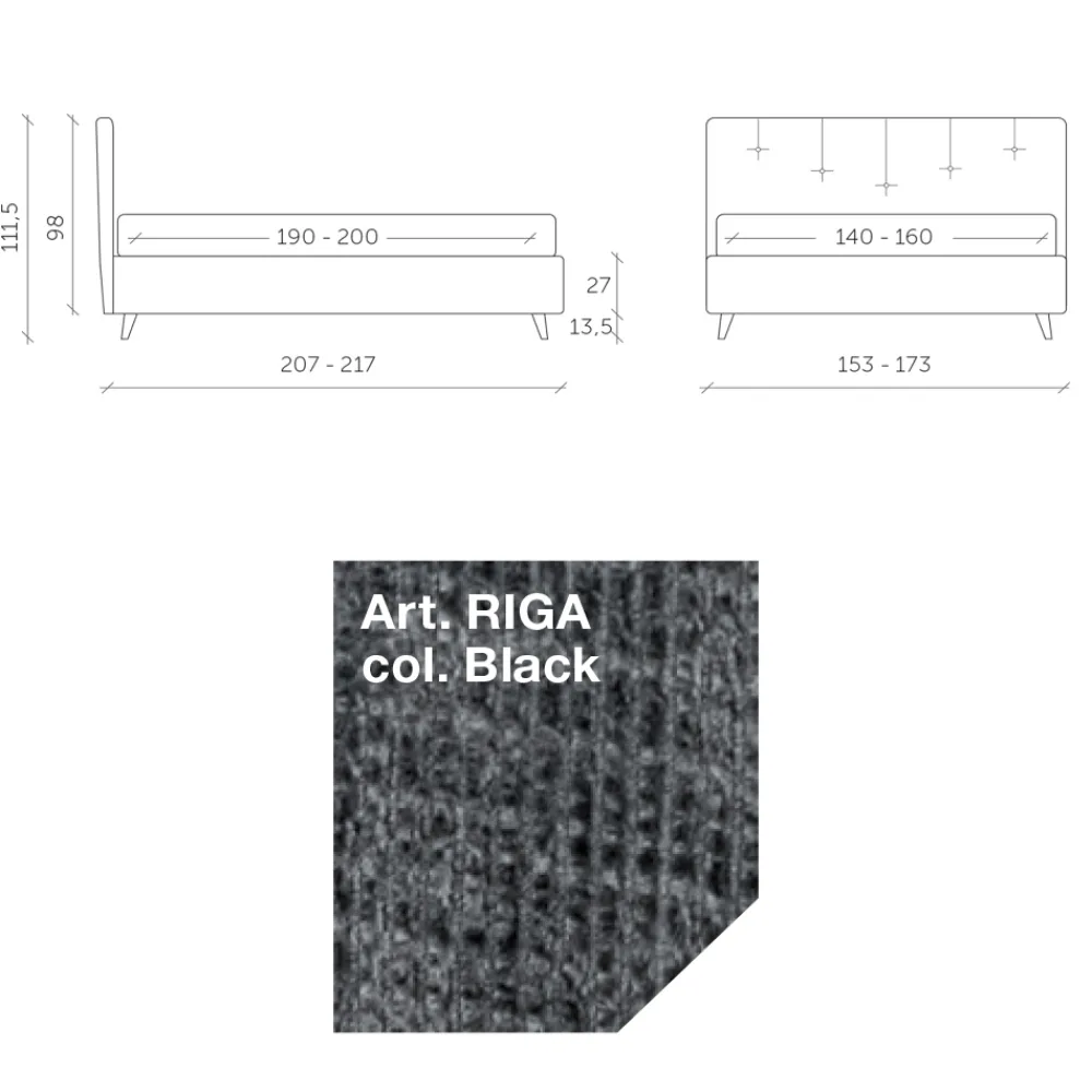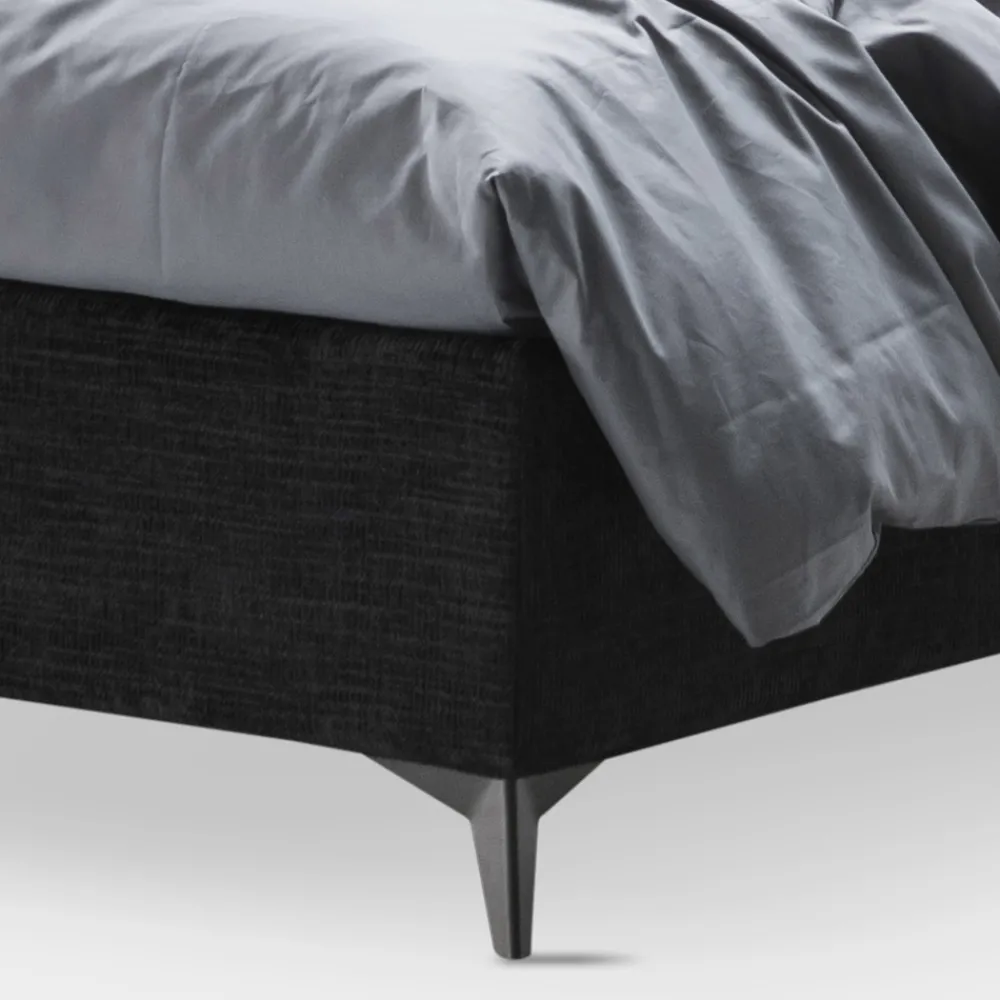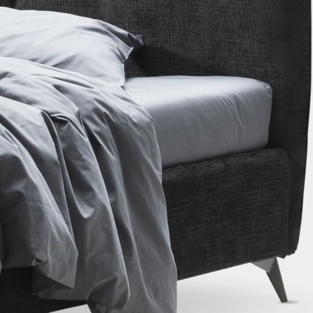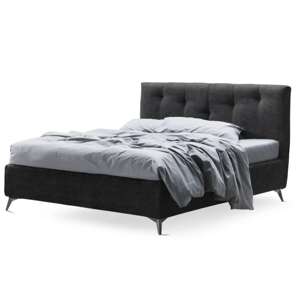 Doppelbett mit Bezug aus umweltfreundlichem und schmutzabweisendem Stoff , dynamischem Untergestell , Aufbewahrungsbox und Metallfüßen in Anthrazit-Optik (Höhe 13,5 cm) sowie Kopfteil mit geprägten vertikalen Kordeln, verziert mit einer Steppung aus Knöpfen.
